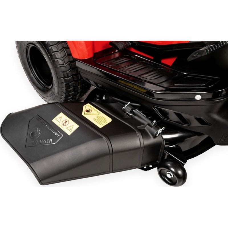 - Breite Frontstoßstange aus hochfestem Stahl, die den Mäher bei einem versehentlichen Aufprall schützt.