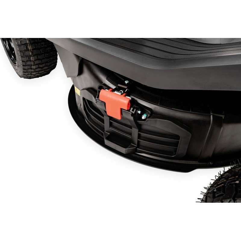 - Das hydrostatische Tuff Torq-Getriebe, das über ein modernes Pedal betätigt wird, ermöglicht eine bessere Kontrolle über die Maschine und sorgt für Sicherheit.