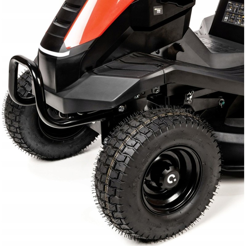 - Die breiten Räder verfügen über ein spezielles Profil, das das Gras während des Einsatzes nicht beschädigt.