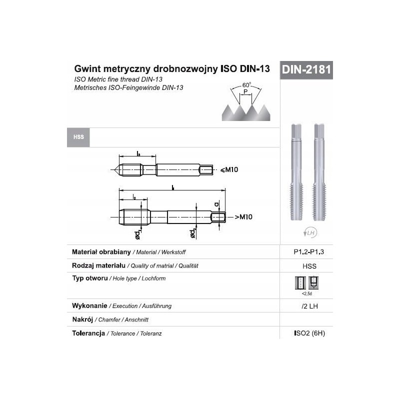 Fanar Gewindebohrer M18x1,5 NGMM/2 DIN-2181 LH (6H) HSS