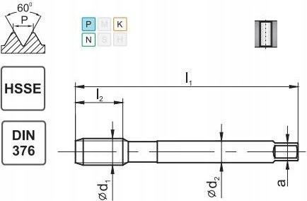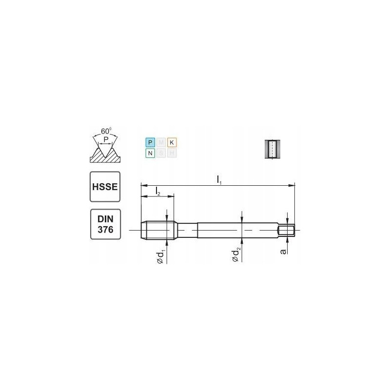 Kühlung – keine Gewindedurchmessertoleranz – ISO2(6H) Art der Spanrillen – Mit schräger Spanfläche d1 – P – 2,50 1"/P – l1 – 125 l2 – 32 l3 – d2 – 14,0 a – 11,0 Durchmesser der Gewindebohrung – 15,50