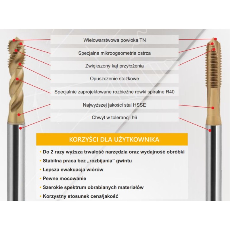 Handgewindebohrer DIN-376C R40 HSSE TIN 800X M20 (D2-513X01-0200)