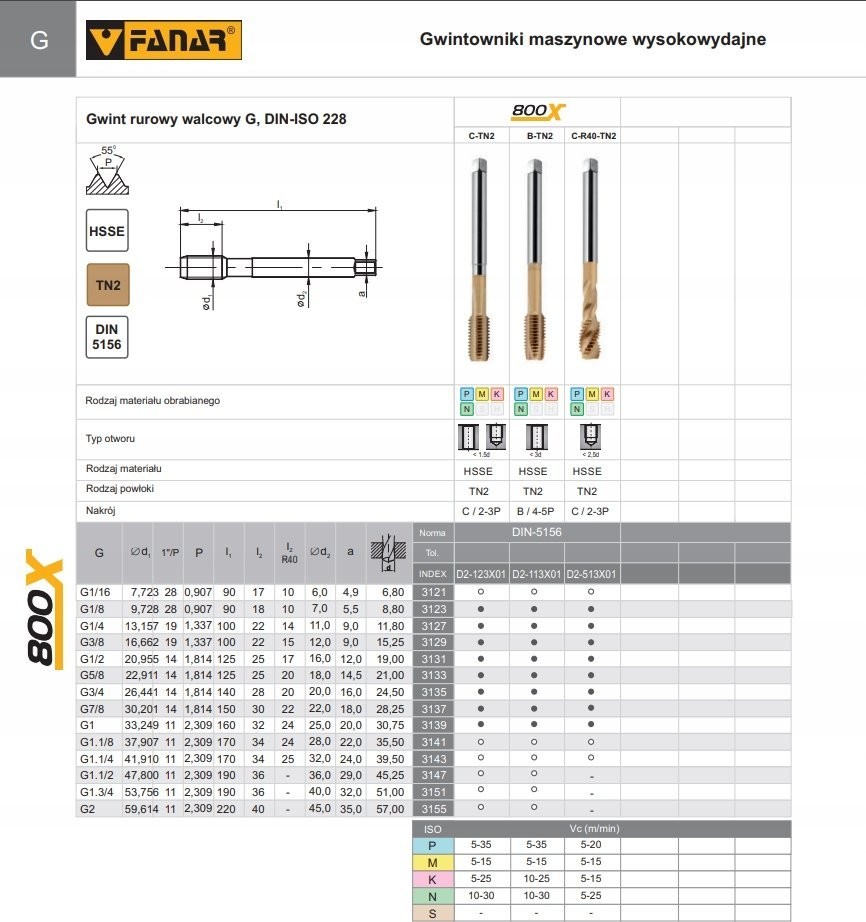 Fanar Gewindebohrer G 3/4" DIN-5156C R40 HSSE TIN 800X