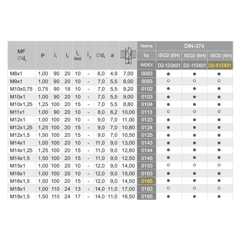 Fanar Gewindebohrer M16x1,5 DIN-374C R40 (6H) HSSE TIN 800X