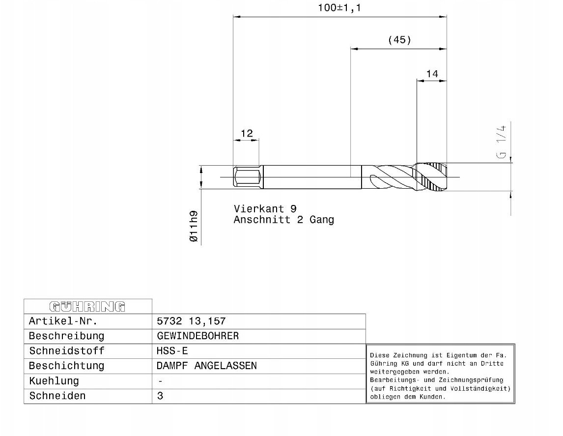 Technische Daten des Werkzeugs GUHRING HSS-E 5732 G1/4