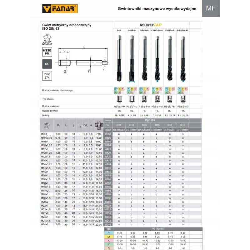 Fanar Gewindebohrer M10x1 DIN-374B (6H) HSSE-PM HL MASTERTAP