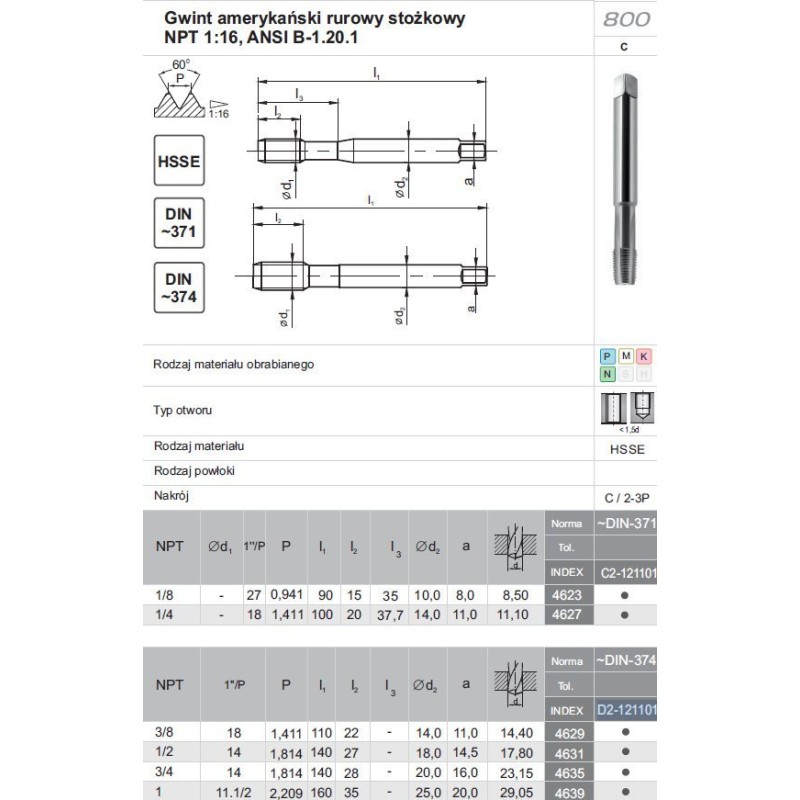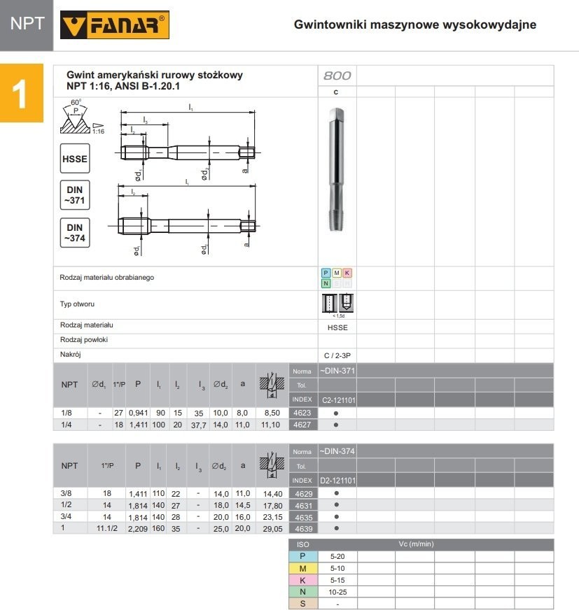 Fanar Gewindebohrer NPT 1"-11,5 DIN-374C HSSE 800