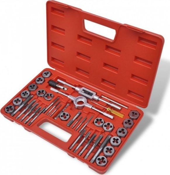 Das 40-teilige Set eignet sich zum Reinigen und Abschneiden von Innen- und Außengewinden an Schrauben und findet in Werkstätten und Garagen Anwendung.