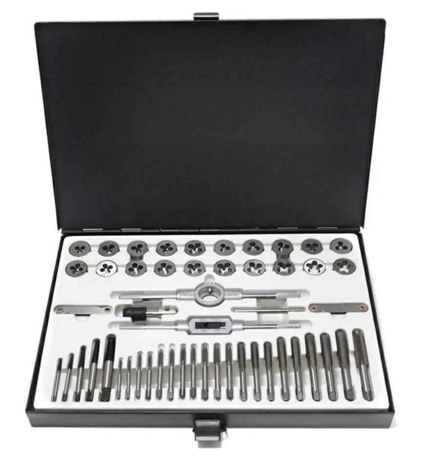 Die im Set enthaltenen Werkzeuge zeichnen sich durch eine hohe Verarbeitungsqualität aus, was eine lange Lebensdauer und Zuverlässigkeit gewährleistet. Gewindebohrer und Muttern wurden für eine präzise Passform entwickelt, was ein einfaches und effektives Gewindeschneiden ermöglicht.