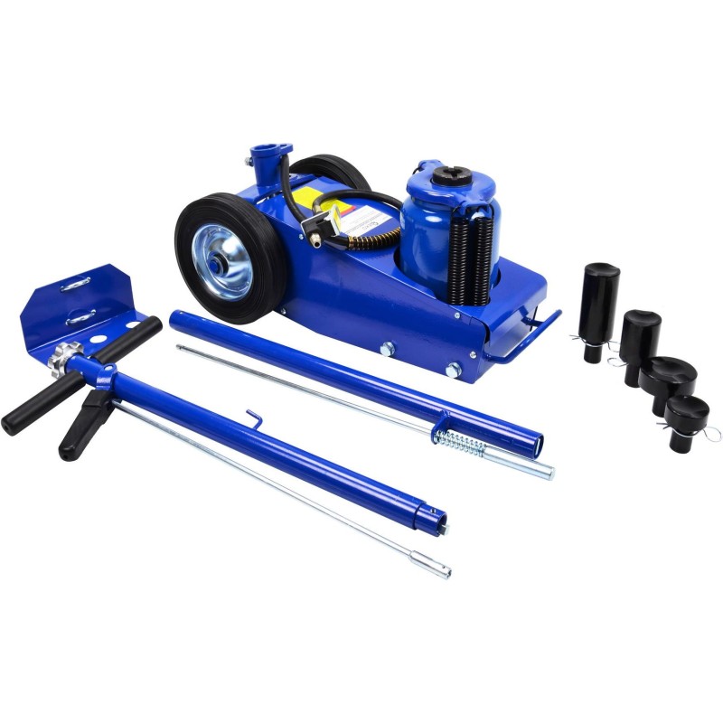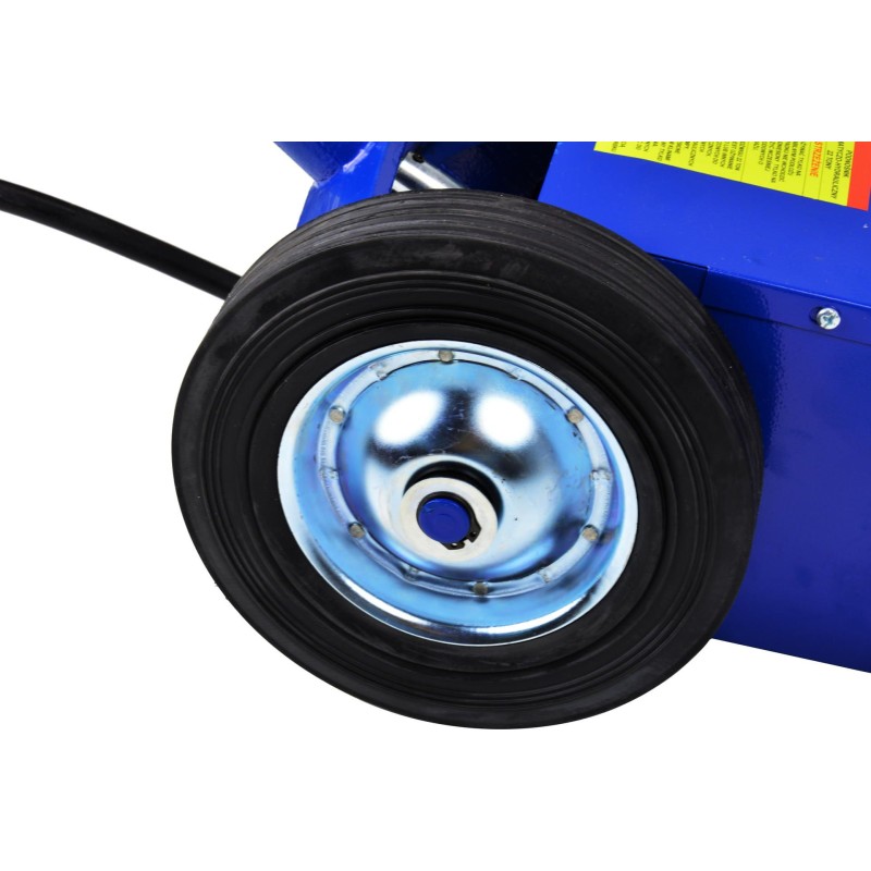 35-Tonnen-Lufthebezeug Zuverlässiger Luftmotor mit integriertem Luftfilter und Schmierung. Die Luftpumpe drückt Hochdrucköl in den Ölzylinder, wodurch sich die Kolbenstange hebt. Der Hebemechanismus besteht aus legiertem Stahl, was seine Langlebigkeit und Betriebssicherheit erhöht. Bestimmt für professionelle Kfz-Werkstätten, die Fahrzeuge mit hohem Eigengewicht (Busse, Lkw usw.) warten. Produktmerkmale: maximale Tragkraft: 35 Tonnen, minimale Hubhöhe: 257 + 20 mm, maximale Hubhöhe: 527 + 100 mm, Betriebsdruck: 7,5 – 8,5 bar Luftanschluss 1/4" Luftschlauch 3/8" mit Klemmbügel verchromter Kolben langer Griff mit Ablage für Aufsätze 3-stufige Neigungsverstellung des Griffs Abmessungen der Aufsätze: 48 x 20, 48 x 60, 48 x 100, 68 x 25 mm zwei Laufräder mit 8" Durchmesser
