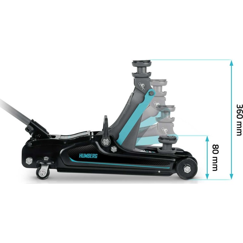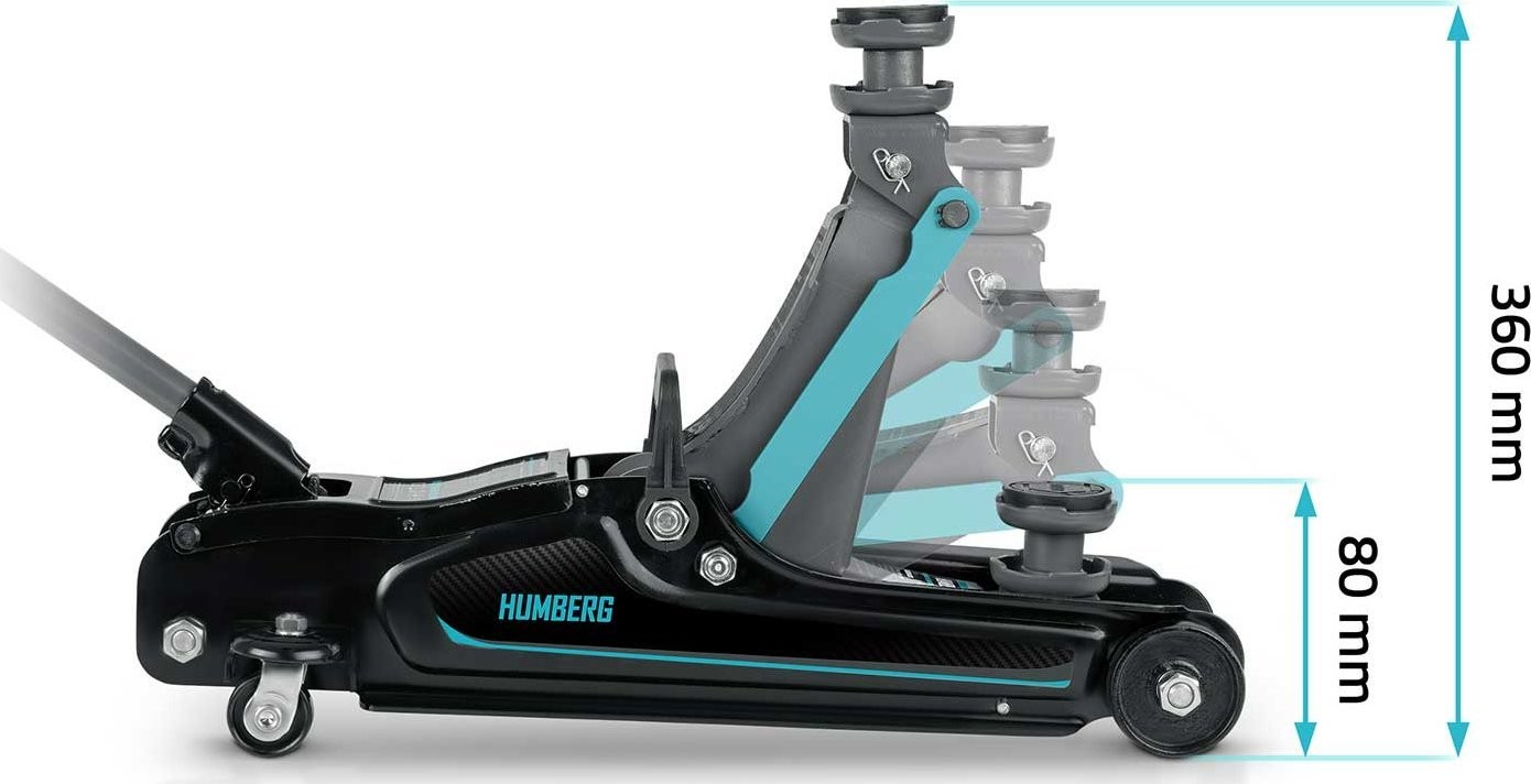 ✔ Hubhöhe 80–360 mm – hebt sogar niedrige Fahrzeuge an!