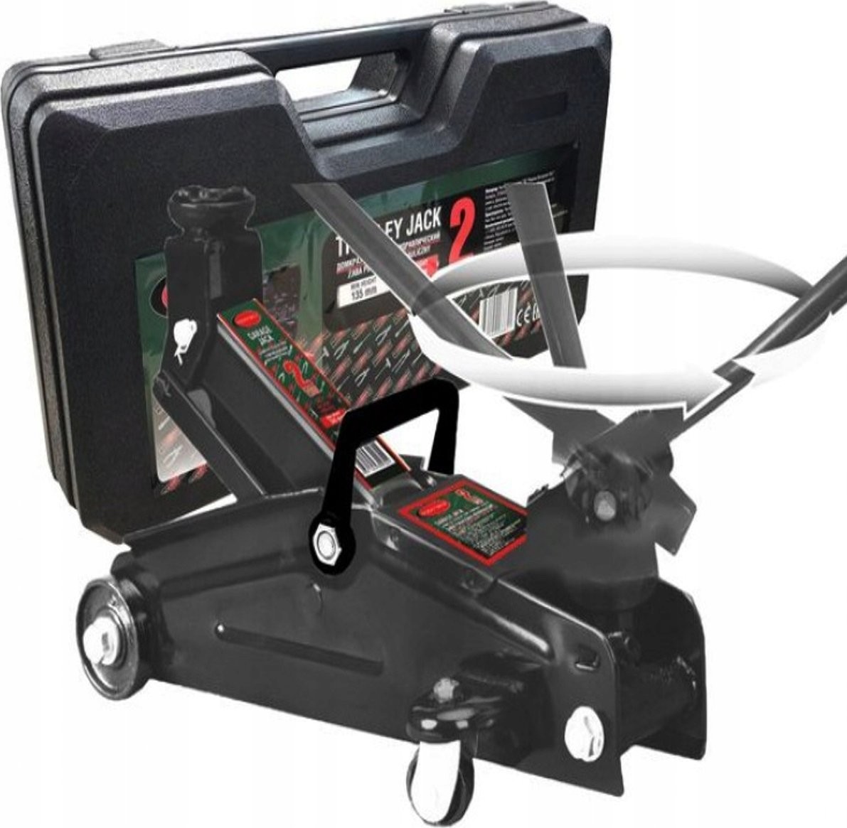 Rockforce Werkstatt-Hebebock 2 t mit um 180° drehbarem Griff (min. Höhe 140 mm, max. Höhe 340 mm) im Koffer