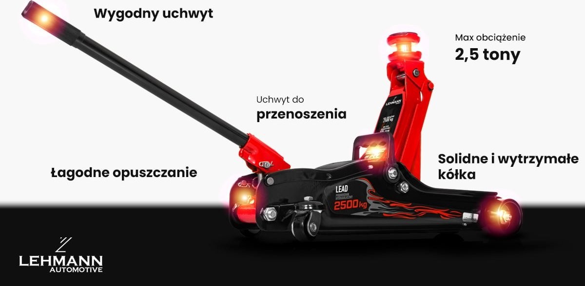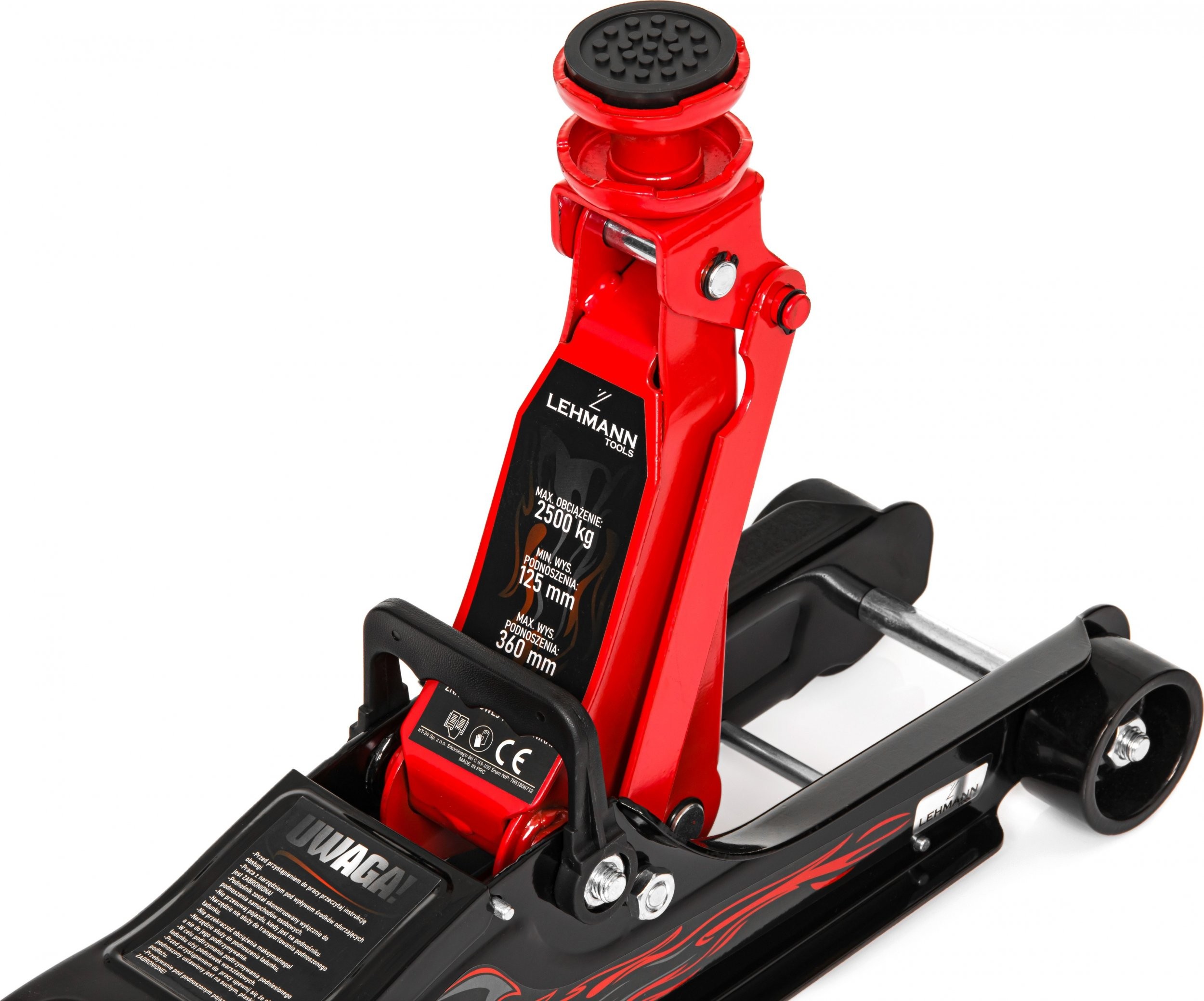 Der professionell gefertigte Wagenheber verfügt über eine leistungsstarke Pumpe, dank der er problemlos Fahrzeuge und Gegenstände mit einem Gewicht von bis zu 2500 kg anheben kann. Das Gerät ist für jeden Autofahrer nicht nur in Notfällen, sondern auch für eigenständige Arbeiten am Fahrzeug, wie zum Beispiel