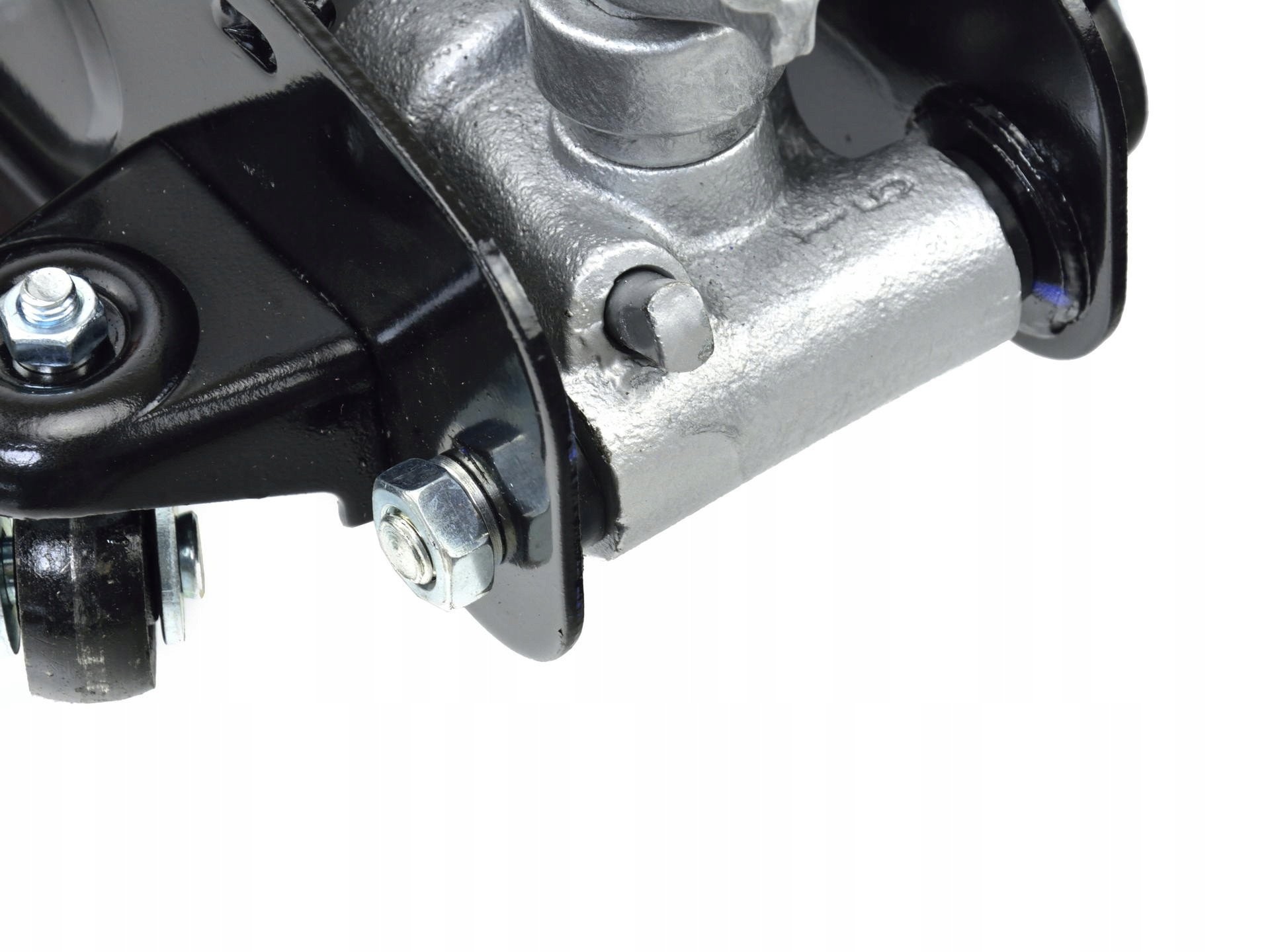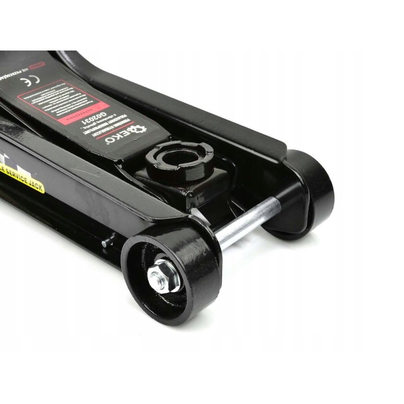 Der Wagenheber ist mit robusten Metall-Vorderrädern sowie schwenkbaren, kugelgelagerten Hinterrädern ausgestattet, was für Stabilität und einfache Manövrierbarkeit sorgt. Dadurch wird die Arbeit mit dem Wagenheber komfortabler und effizienter.