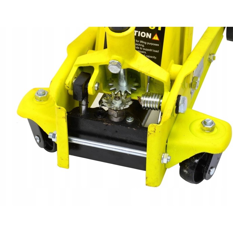 Der Hebebock ist mit Stahlrädern an der Vorderachse und gelagerten, schwenkbaren Hinterrädern ausgestattet, was für eine einfache Manövrierbarkeit sorgt. Dadurch wird die Arbeit in der Werkstatt komfortabler und effizienter.