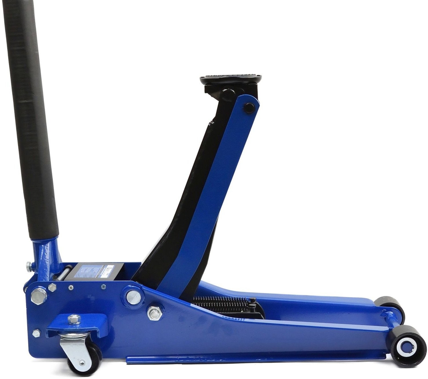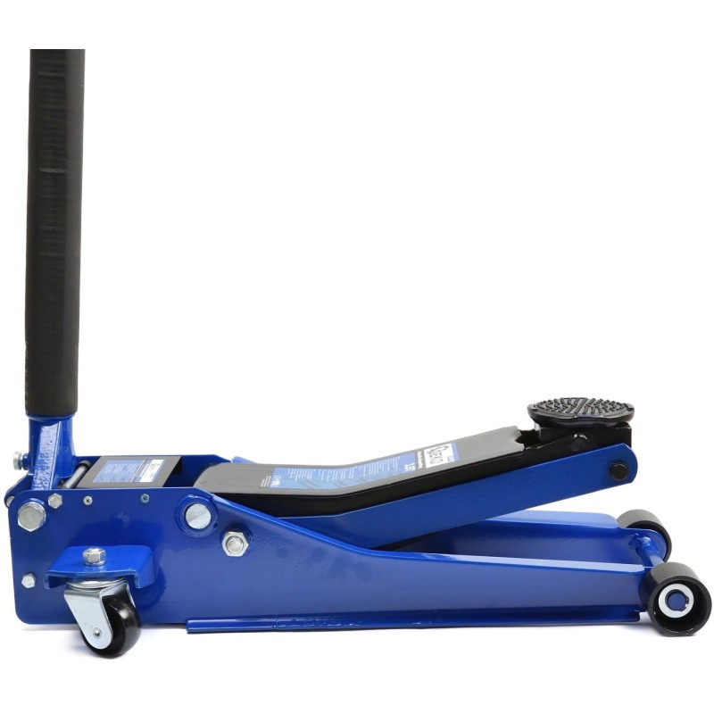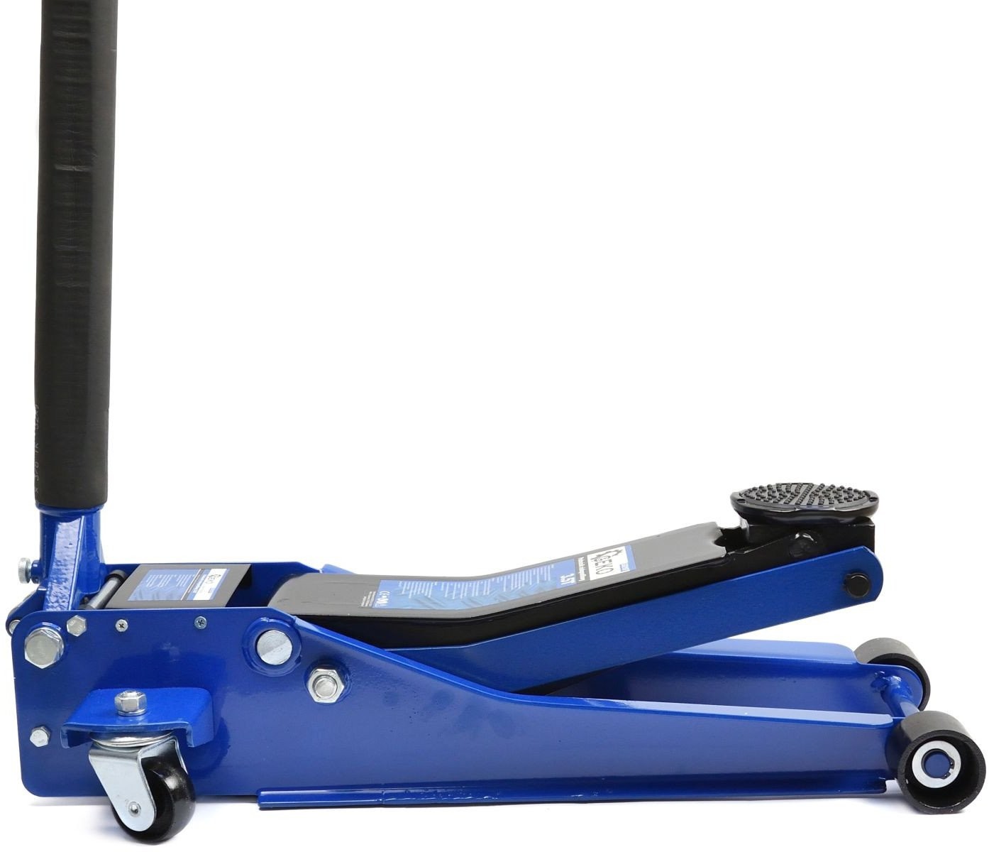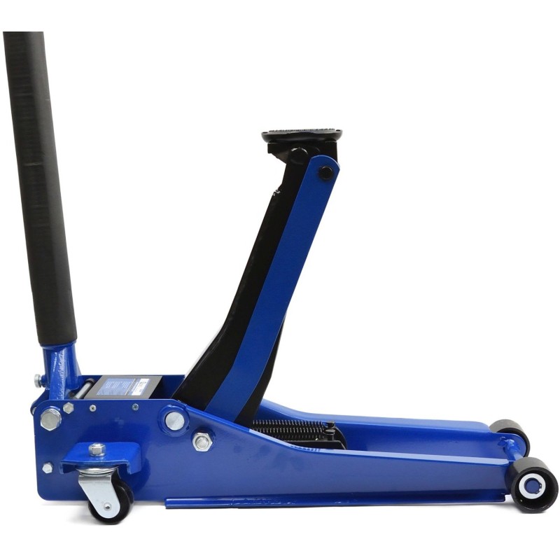 Professioneller Hydraulikheber. Die doppelte Hydraulikpumpe ermöglicht ein schnelles und sanftes Anheben. Der breite, verstärkte Rahmen gewährleistet einen sicheren Betrieb des Geräts. Vier Räder, darunter zwei Lenkrollen, sorgen für eine hohe Mobilität des Hebers.