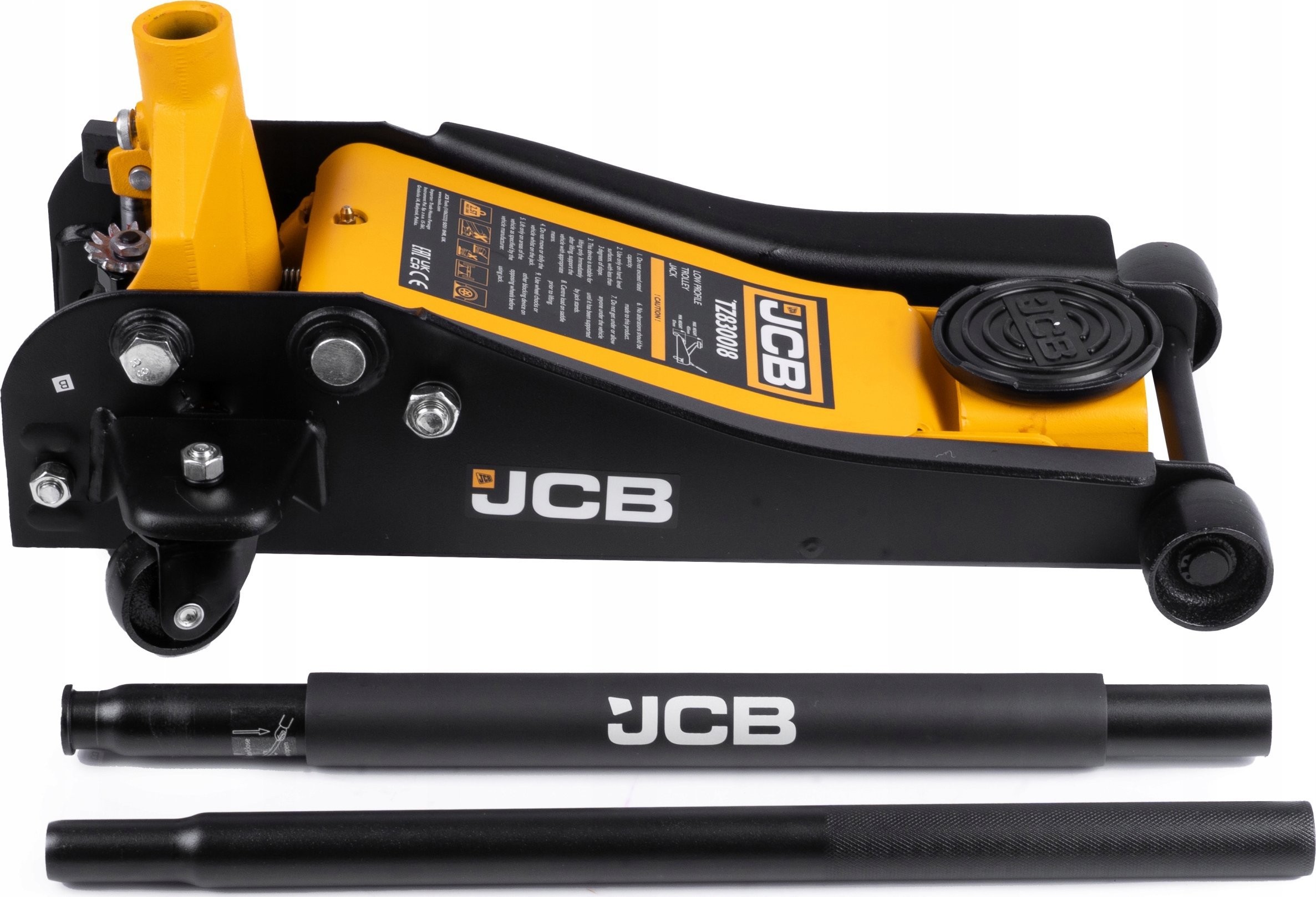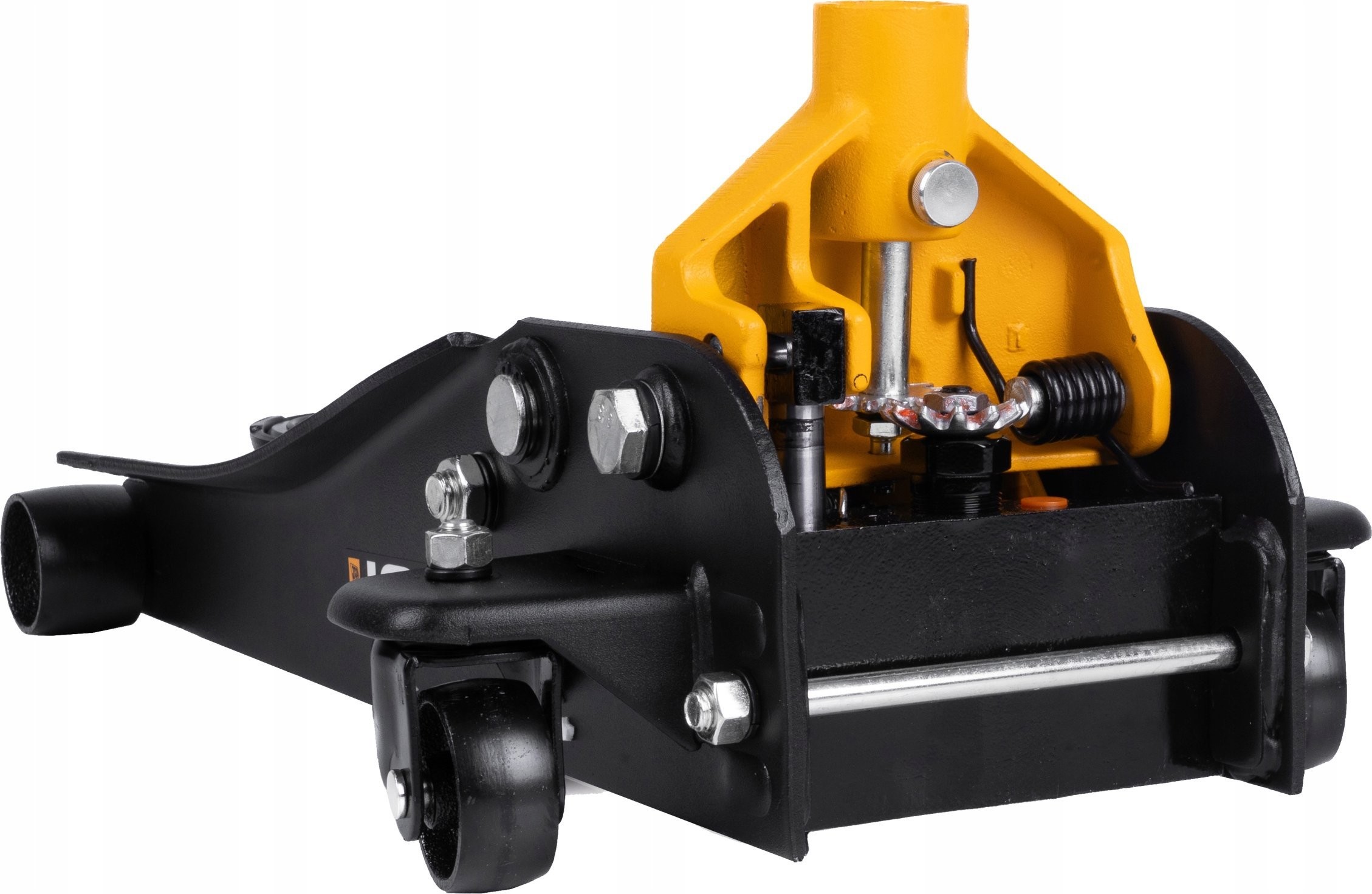 Der Wagenheber wurde aus ausgewähltem Stahl gefertigt, der sich durch Korrosionsbeständigkeit und Widerstandsfähigkeit gegen mechanische Beschädigungen auszeichnet. Dank des leistungsstarken Hydrauliksystems ist der JCB-Wagenheber robust und sicher und kann Fahrzeuge bis zu 2,5 Tonnen ohne Leckagen, Vibrationen oder Verformungen anheben