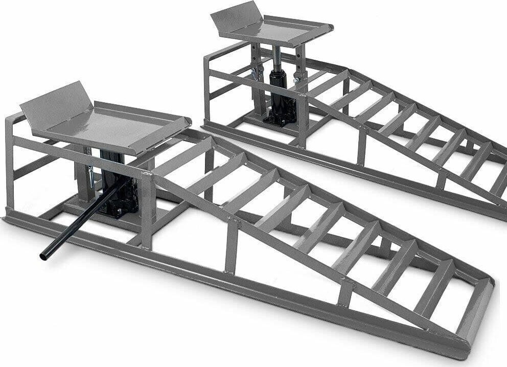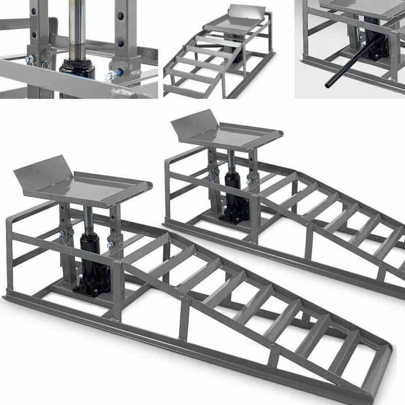 Bituxx Rampen in Graphit, Auffahrrampen mit hydraulischem Hebemechanismus, 2 x 2000 kg