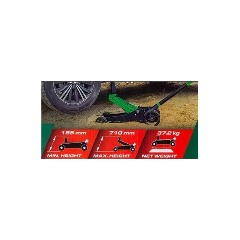 - GESCHWINDIGKEIT: Große Räder ermöglichen ein leichtes und schnelles Rollen auf unebenem Gelände, im Schlamm, im Sand oder auf dem Bürgersteig; der Doppelkolben benötigt nur wenige Bewegungen, um die maximale Höhe zu erreichen.