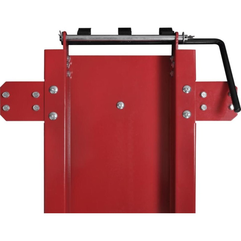 Der hochwertige Ständer eignet sich hervorragend zur Aufbewahrung eines Motorrads. Er besteht aus einem Hauptständer (190 x 28,5 cm, Tiefe 20 cm) und einem Seitenständer (47 x 17,5 cm, Tiefe 13 cm) und wiegt etwa 18 kg. Seine maximale Tragkraft beträgt 250 kg.
