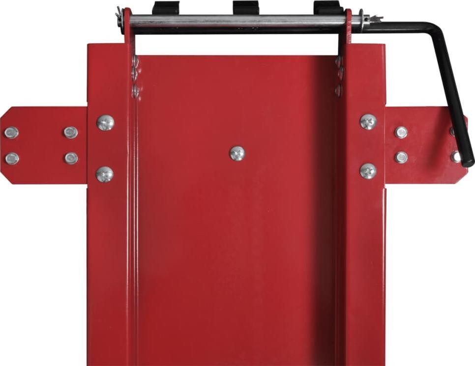 Der Ständer ist mit Lenkrollen ausgestattet, wodurch er sich leicht manövrieren lässt. Eine integrierte Bremse verhindert ein unkontrolliertes Wegrollen. Er eignet sich für fast alle Maschinen mit Stützfüßen. Durch die Pulverbeschichtung ist er hervorragend vor Rost geschützt.
