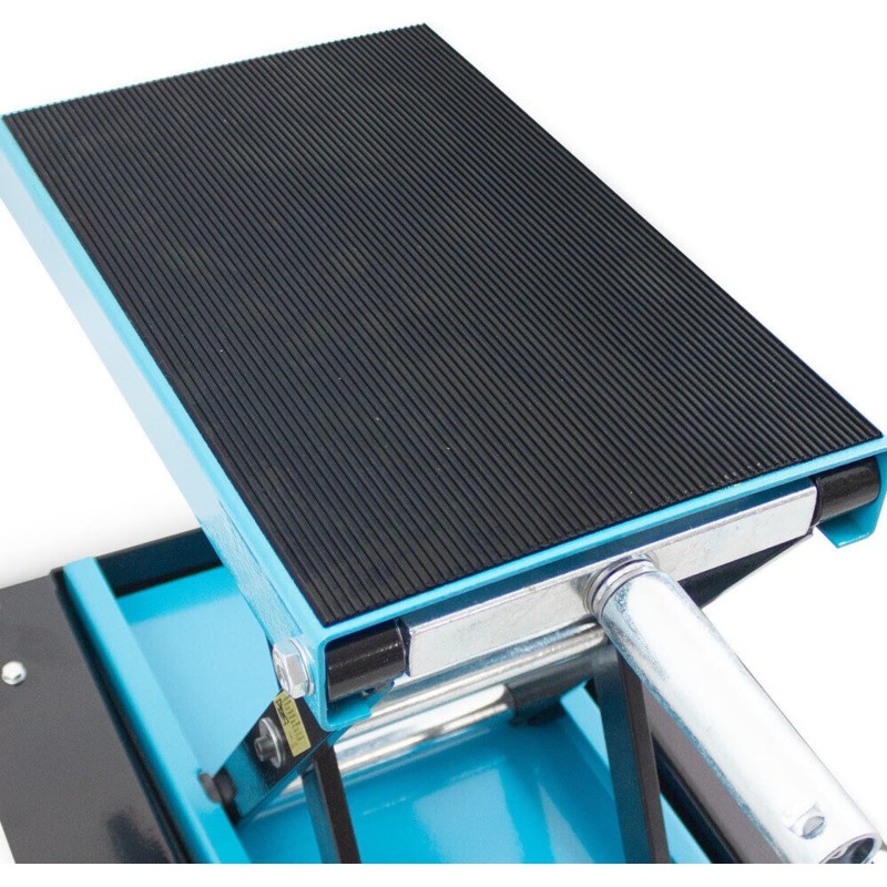 Dank seiner robusten Konstruktion und einfachen Handhabung eignet sich der Motorrad-Scherenheber für sichere und bequeme Wartungs- und Reparaturarbeiten an Vorder- und Hinterachse, sei es im Hobbybereich oder in der professionellen Werkstatt. Die Hebebühne kann am Rahmen, am Motor oder am Schwingarm befestigt werden.