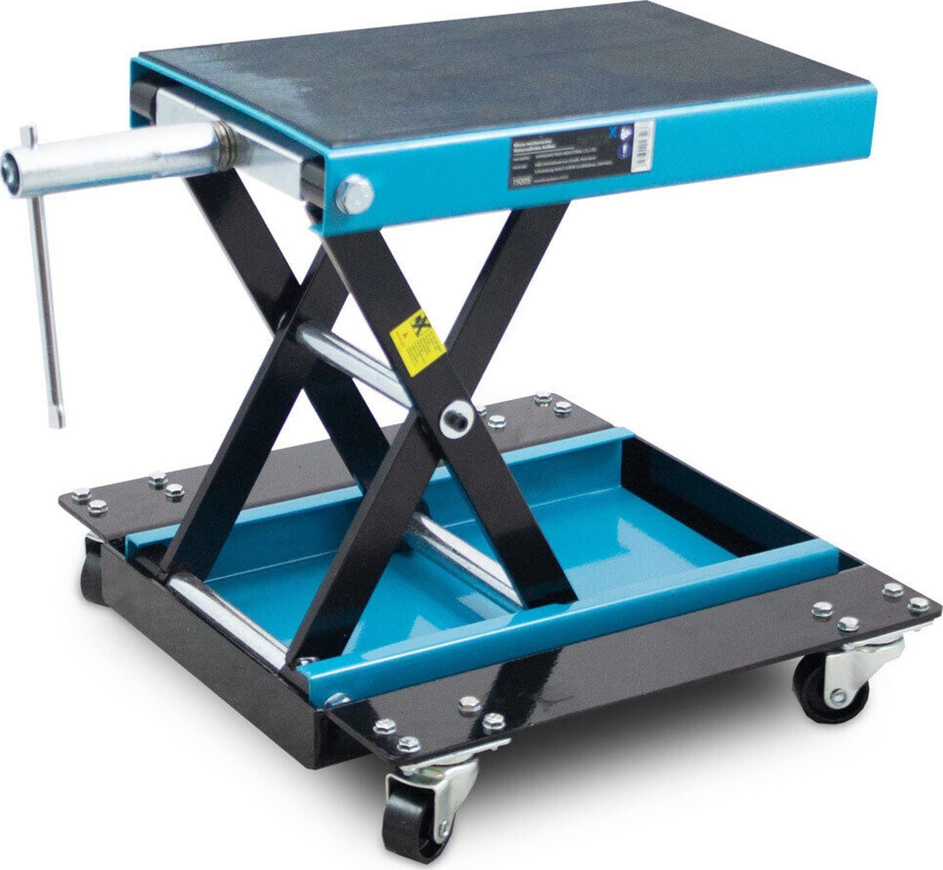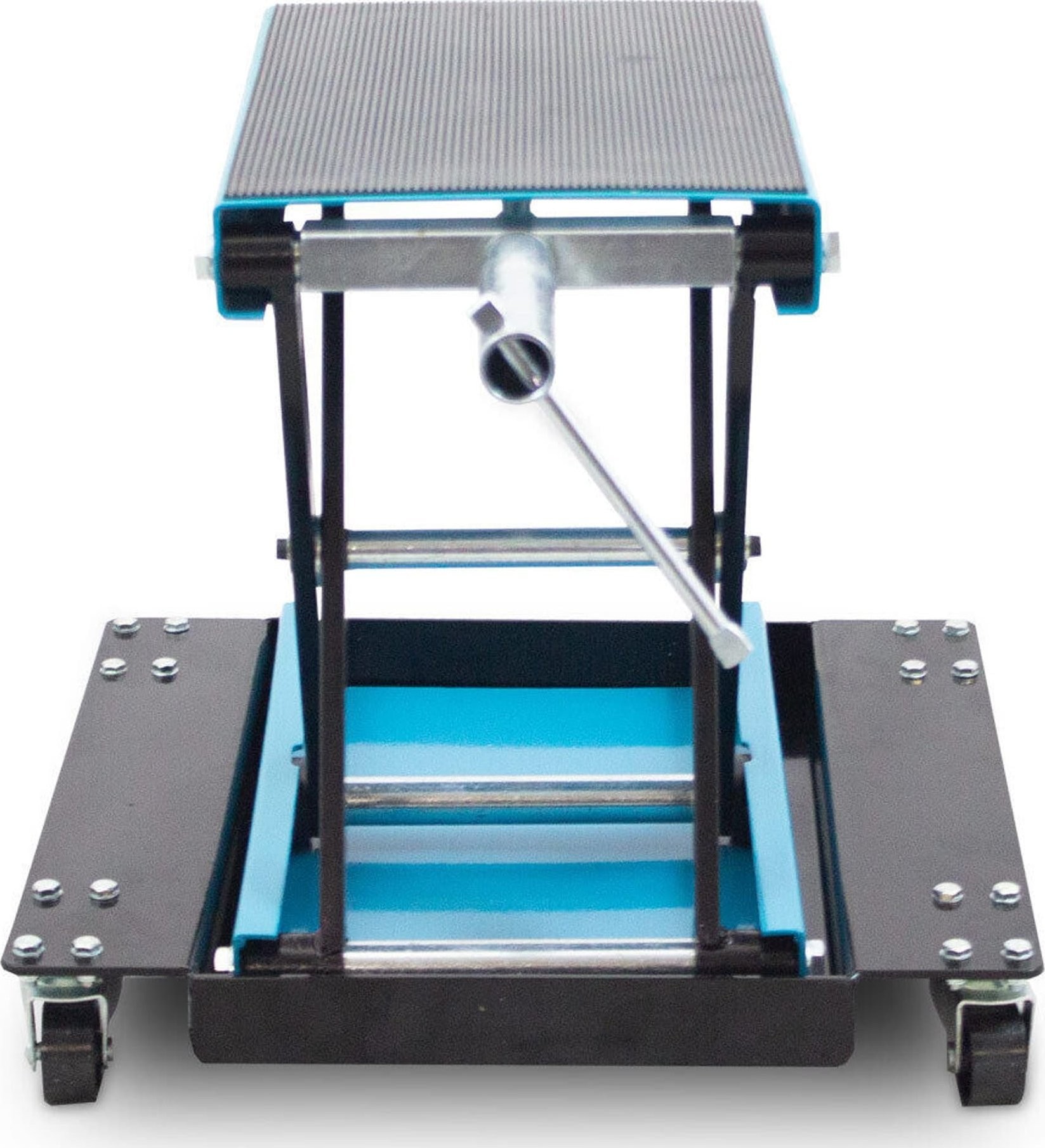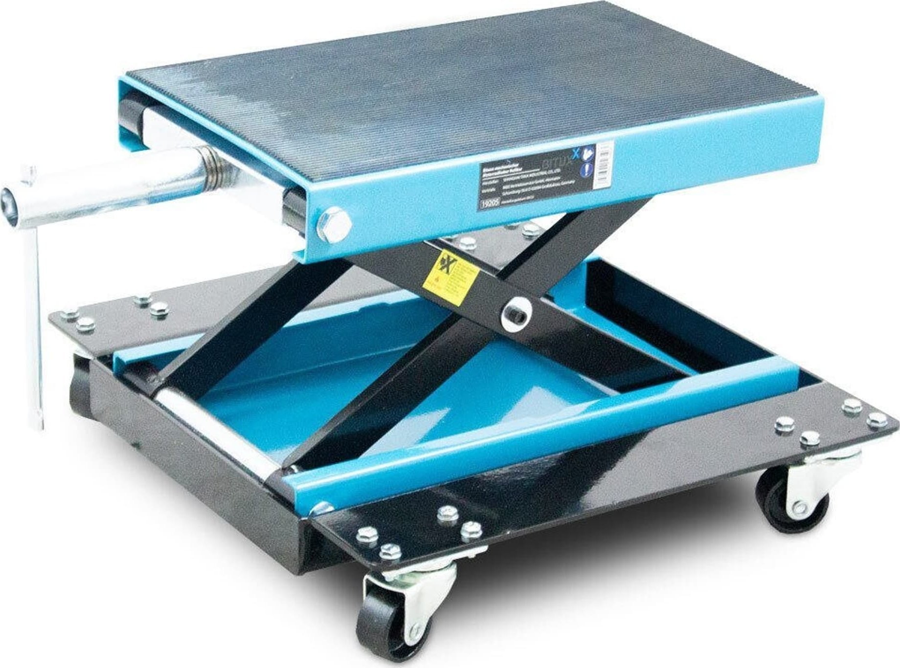 Mit dem robusten Bituxx-Motorradheber können Sie Motorräder mit Doppelrohrrahmen problemlos anheben. Der Heber lässt sich individuell über eine Kurbel, eine Ratsche oder einen Schlüssel an der Einstellschraube verstellen.