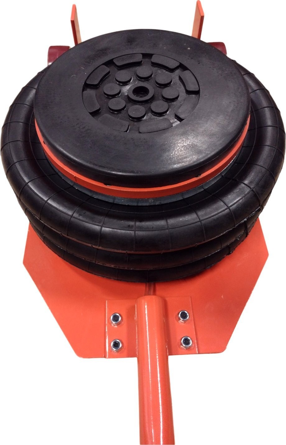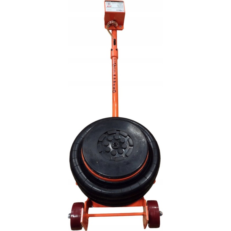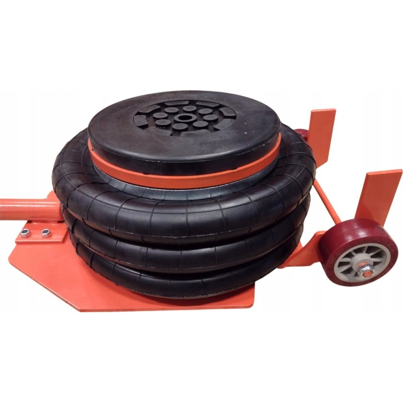 - Die Sprühluft füllt den Ballon des Hebers und übt dabei eine Kraft aus, wodurch sich der obere Teil des Hebers hebt und das Fahrzeug anhebt. Die Hubgeschwindigkeit hängt von der auf dem Wagenheber lastenden Last ab und kann durch stärkeres oder schwächeres Öffnen des Einlassventils reguliert werden. Dieser Vorgang kann jederzeit durch Schließen des Einlassventils gestoppt werden; dadurch wird die Zufuhr von Druckluft zum Wagenheber unterbrochen, der Hubvorgang stoppt und der Wagenheber hält die gewünschte Höhe.
