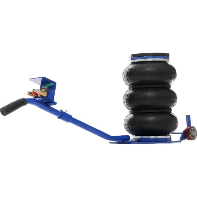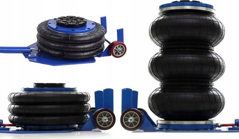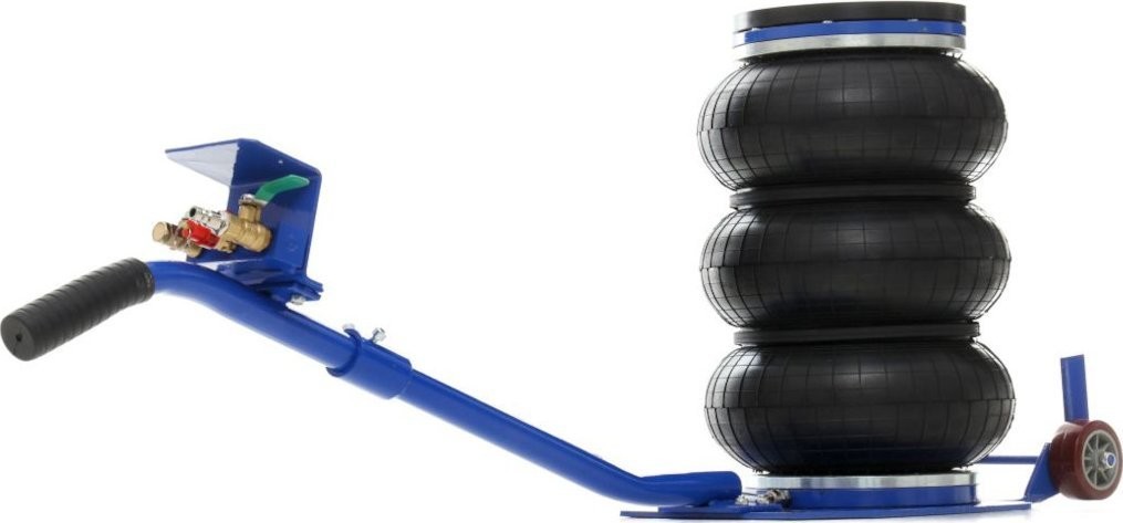 - Das Luftkissen des Hebers hebt sich nach oben und hebt einen Teil des Fahrzeugs an, während sich das Luftkissen mit Druckluft füllt. Die Hubgeschwindigkeit hängt von der Last ab und kann durch Anpassung des Luftstroms reguliert werden. Der Hubvorgang kann durch Schließen des Einlassventils gestoppt werden, wodurch der Heber auf der gewünschten Höhe gehalten wird.