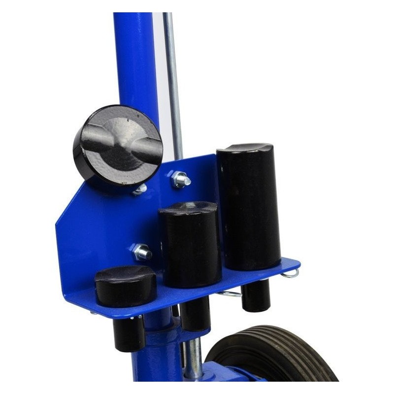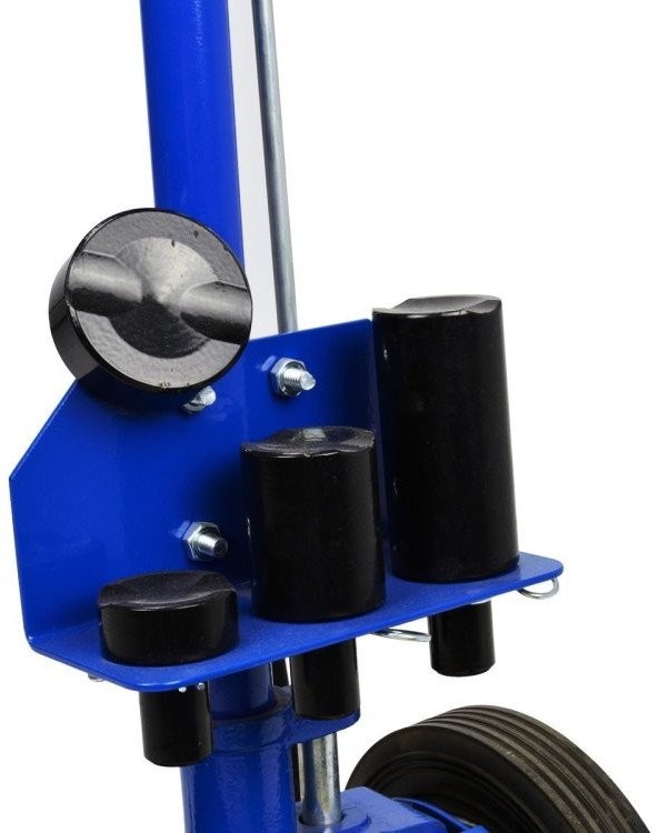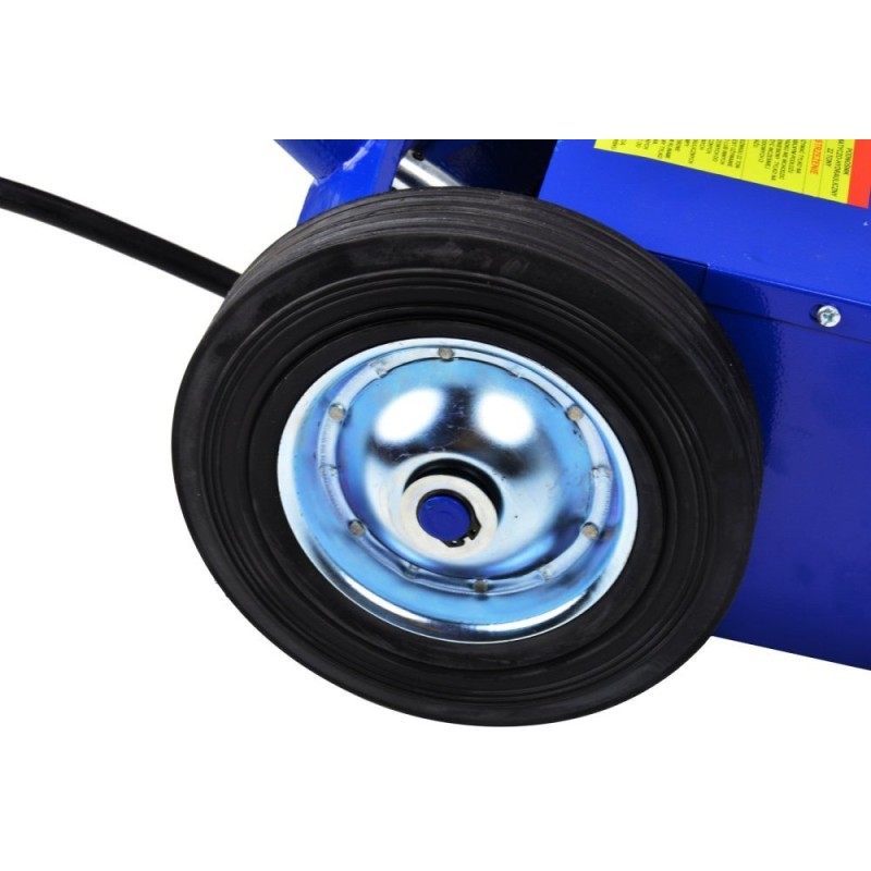 Der Wagenheber ist mit zwei Laufrollen ausgestattet, was seinen Transport erheblich erleichtert. Dank dieser Rollen lässt sich das Gerät schnell und effizient innerhalb der Werkstatt bewegen, was die Arbeitseffizienz steigert und wertvolle Zeit spart.