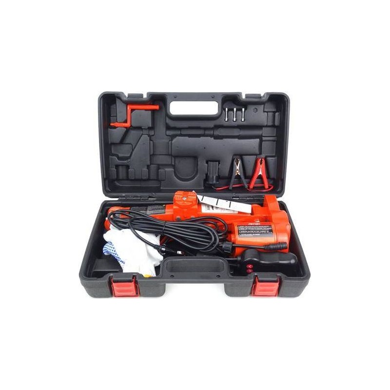Der Heber kann über den Zigarettenanzünder oder direkt über die Batterie mit Strom versorgt werden; mithilfe des im Lieferumfang enthaltenen Adapters lässt sich die Hubhöhe über die mitgelieferte Fernbedienung steuern. Mit den Auf- und Ab-Tasten lässt sich das Gerät in einem Bereich von 120–350 mm betreiben. Das gesamte Set ist in einem praktischen und robusten Koffer verpackt, der eine bequeme Aufbewahrung der Ausrüstung ermöglicht und deren Transport erleichtert. TECHNISCHE DATEN DES HEBEGERÄTS: maximale Tragkraft: 3 t Mindesthöhe: 110 mm Hubhöhe: 350 mm Eingangsspannung: 12 V Nennstrom: 13 A Nennleistung: 100 W Nettogewicht: ca. 4,2 kg Zertifizierungen: TÜV und GS DER HEBER VERFÜGT ÜBER ALLE METALLTEILE IM SET ENTHALTEN SIND: elektrischen Hebevorrichtung, robusten Koffer, Bedienfeld/Fernbedienung, 3,5 m langes Anschlusskabel für den Zigarettenanzünder, Adapter für den direkten Anschluss an die Batterie, ein Paar Handschuhe, Ersatzsicherungen, Bedienungsanleitung