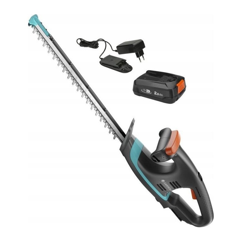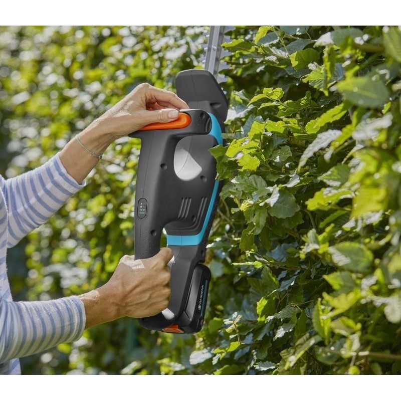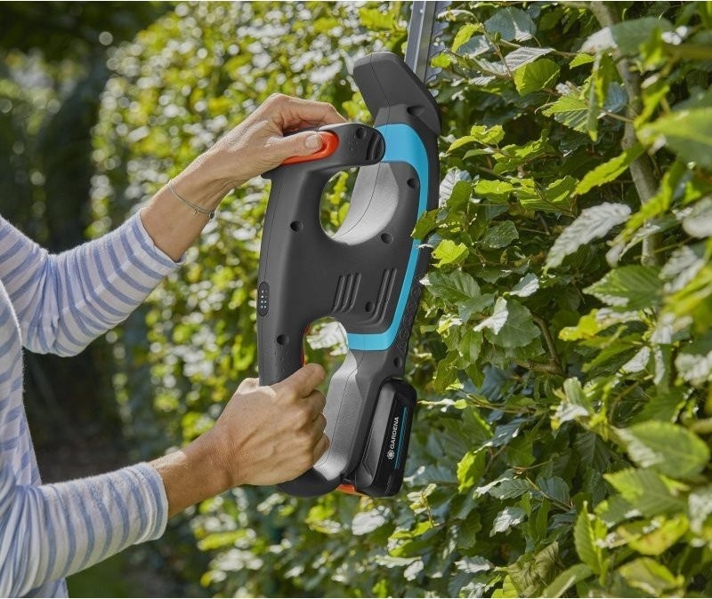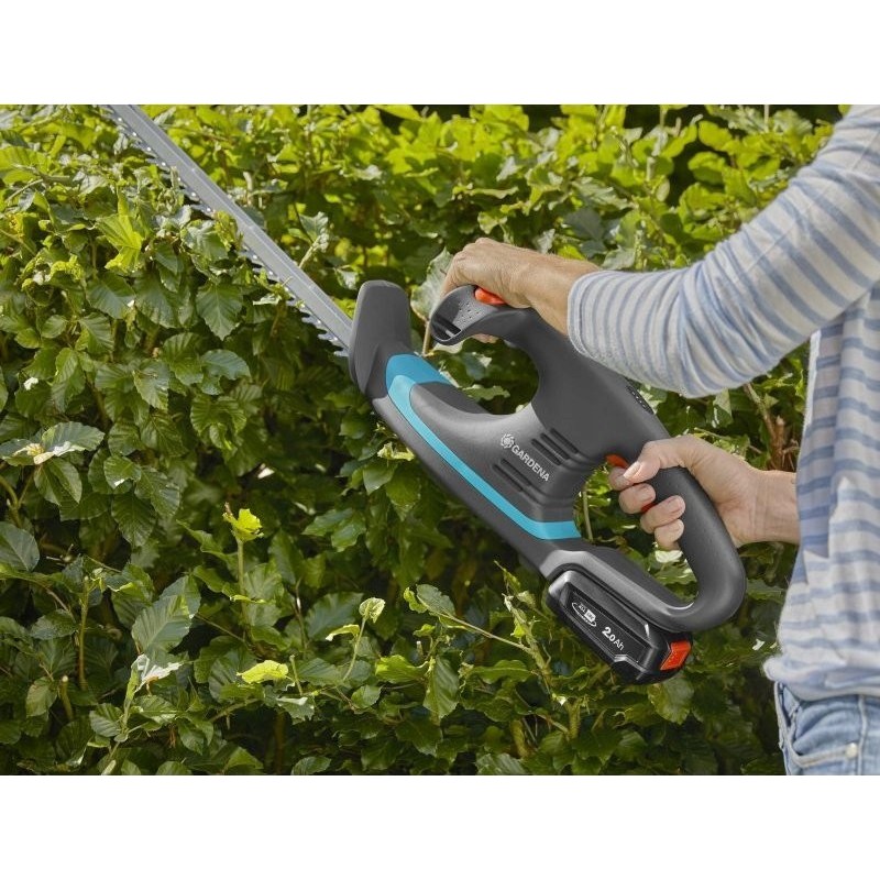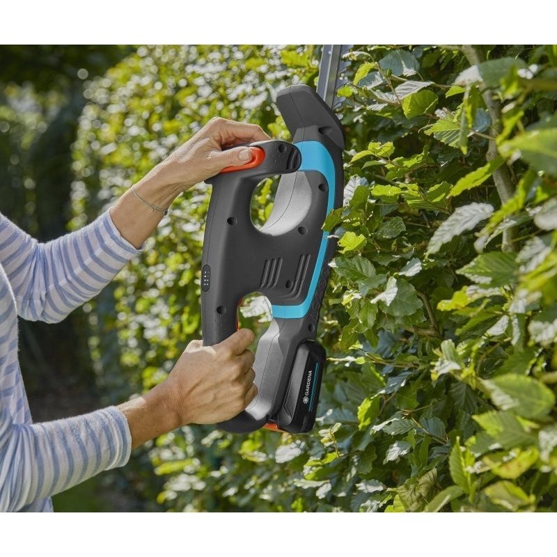 Mit dieser besonders leichten und handlichen Akku-Heckenschere EasyCut 40/18V P4A – Set von GARDENA bringst du kleine und mittelgroße Hecken in Form. Das geringe Gewicht von nur 2,3 kg inklusive Akku erleichtert das Schneiden. Dank des ErgoTec-Griffs mit integriertem Schalter liegen die ergonomischen Heckenscheren in jeder Position sicher in der Hand. Die Schnittlänge beträgt 40 cm. Die lasergeschnittenen und geschliffenen Klingen sorgen für präzise und schnelle Schnitte mit hoher Leistung, bei geringem Kraftaufwand und ohne Unterbrechungen. Beim Schneiden in Bodennähe und entlang von Wänden werden die Klingen der Heckenschere durch eine Schutzkappe am Ende der Schneidleiste geschützt. Über das LED-Display am Griff lässt sich der Ladezustand des Akkus jederzeit ablesen. Der im Lieferumfang enthaltene, voll aufgeladene 2,0-Ah-Akku ermöglicht eine Schnittzeit von ca. 70 Minuten. Die GARDENA Akku-Heckenschere EasyCut 40/18V P4A wird als Set mit Ladegerät und einem schnell aufladbaren 18V POWER FOR ALL-Akku geliefert. POWER FOR ALL ALLIANCE ist eine der größten strategischen Allianzen führender Hersteller von Akku-Produkten. Akkus dieser Serie können in vielen verschiedenen Geräten für Haus und Garten verwendet werden.