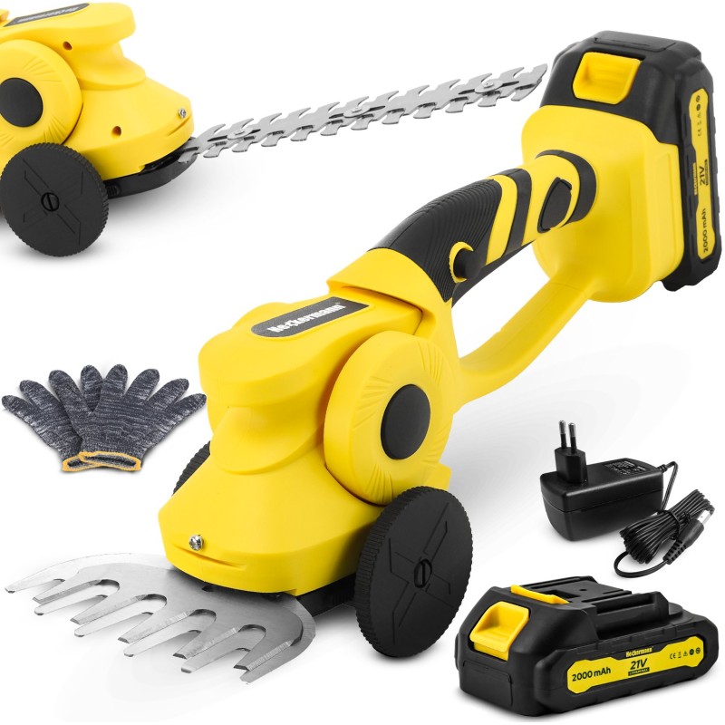 Dank des Lithium-Ionen-Akkus mit einer Kapazität von 2000 mAh arbeiten die Scheren lange und effizient. Das Fehlen eines Netzkabels ermöglicht es Ihnen, sich frei im Garten zu bewegen, unabhängig von dessen Größe. Zusätzlich ist das Gerät mit einem Ladegerät ausgestattet, was die Nutzung erleichtert.