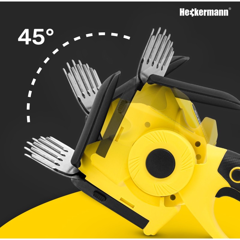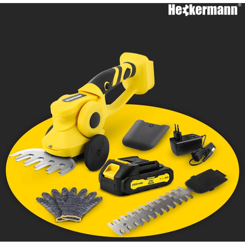 Die Heckermann AJNT20-Schere wird mit zwei austauschbaren Klingen geliefert: einer 13 cm langen für Gras und einer 22 cm langen für Hecken. Dank dieser Vielseitigkeit eignet sich das Gerät perfekt für verschiedene Gartenarbeiten, vom präzisen Rasenschnitt bis zum Formen von Hecken.