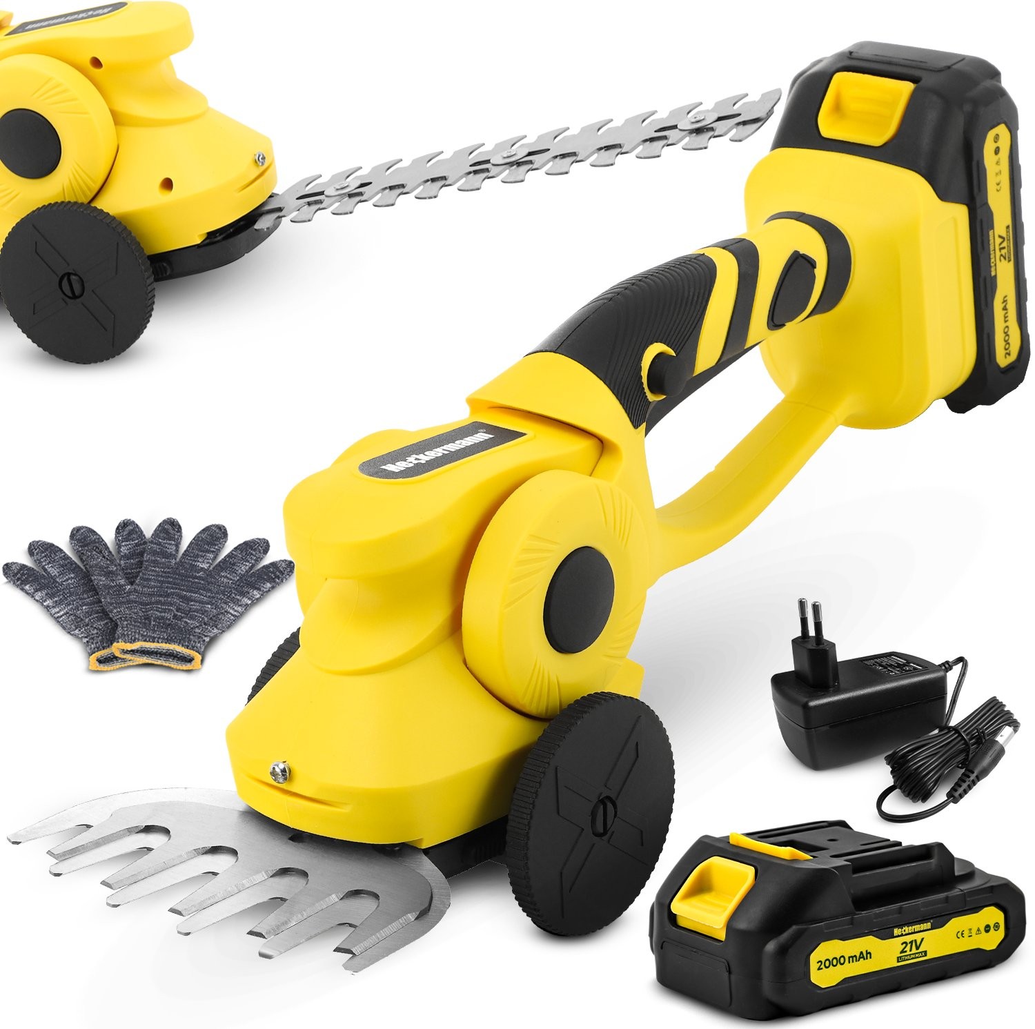 Alles, was Sie für eine effektive Gartenarbeit benötigen, ist im Lieferumfang enthalten. Neben der Schere erhalten Sie ein Ladegerät und Schutzhandschuhe, sodass das Gerät sofort nach dem Kauf einsatzbereit ist.