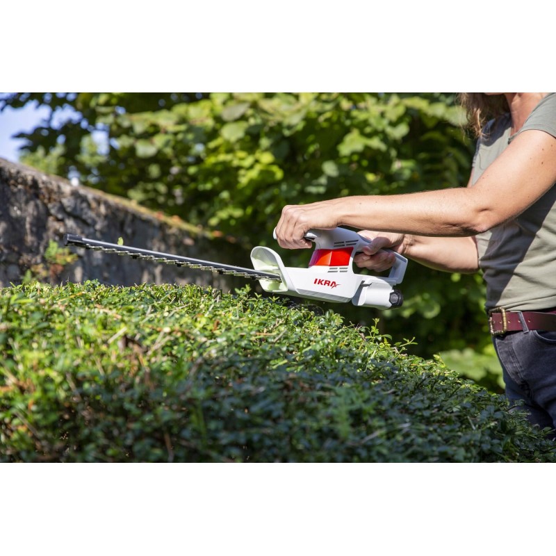 Die Akku-Heckenschere IKRA IAHS1240 ist mit anderen Gartengeräten der Marke IKRA kompatibel, was ihre Vielseitigkeit erhöht. Sie lässt sich mit dem Rasentrimmer IART 1224 und der Teleskop-Heckenschere IATHS 1241 kombinieren, was sie zur idealen Wahl für jeden Gärtner macht.
