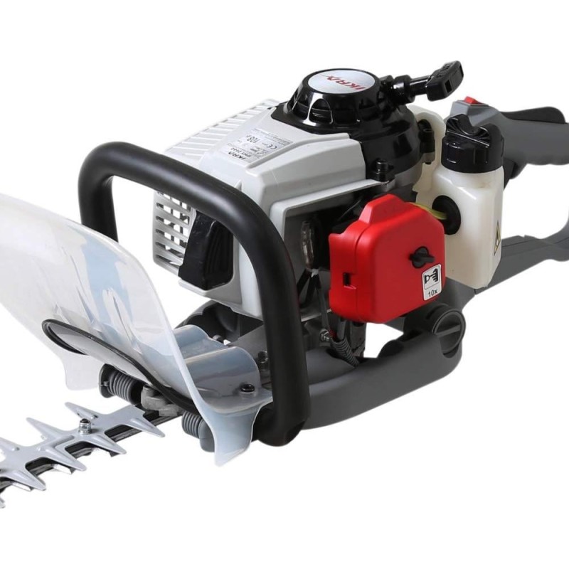 Die IKRA IPHT 2660 ist eine Benzin-Heckenschere, die für das regelmäßige Schneiden und Formen von Hecken und Zierbäumen bestimmt ist. Angetrieben von einem Zweitaktmotor mit 25,4 cm³ Hubraum und 0,9 PS Leistung. Das Gerät mit einer Schnittlänge von 60 cm und einer Schnittstärke von 27 mm ermöglicht saubere, gerade Schnitte und beschleunigt die Arbeit erheblich. Ergonomischer, um 180° drehbarer Griff für vertikale und horizontale Schnitte. Der ergonomische und vibrationsdämpfende Rundgriff erhöht den Arbeitskomfort, verringert dadurch die Ermüdung des Bedieners erheblich und ermöglicht ein längeres und komfortableres Arbeiten. Die Heckenschere besteht aus modernen, gehärteten Kunststoffen in Kombination mit Metallen und erreicht so ein Gewicht von nur 6,1 kg sowie eine hervorragende Balance.