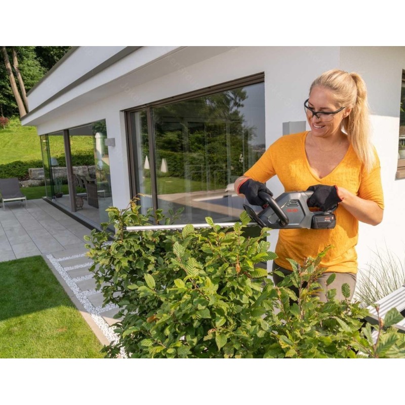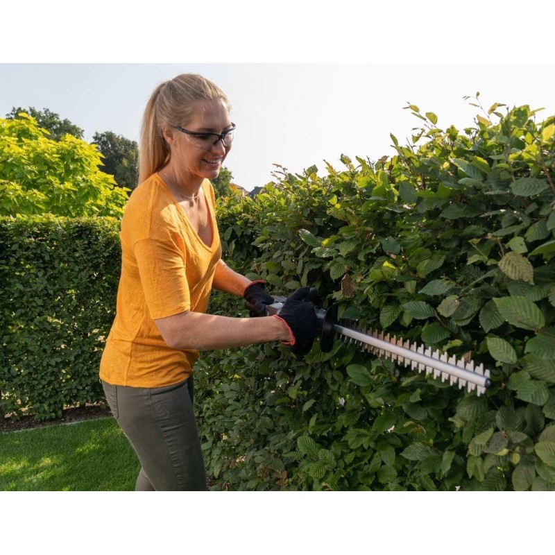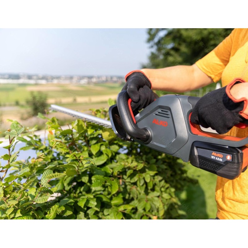 Mit der Akku-Heckenschere AL-KO HT 1845 mit diamantgeschliffener Klinge wird das Heckenschneiden für Sie zum Kinderspiel – sowohl als regelmäßige Pflichtarbeit als auch zur gezielten Gestaltung Ihrer Gartendekoration. Die hochwertige 45 cm lange Schneidleiste sorgt für schnelle und präzise Schnitte. Die sehr leichte und netzunabhängige Heckenschere ermöglicht einen komfortablen Arbeitsbereich ohne Kabelsalat und verhindert das versehentliche Durchtrennen von Stromkabeln. Der ergonomisch geformte Griff sorgt für eine einfache Handhabung und sicheres, komfortables Arbeiten in jeder Position. Die HT 1845 AL-KO 18 V Comfort wird mit dem Akku AL-KO 18 V BOSCH HOME AND GARDEN COMPATIBLE betrieben. Bei Bedarf kannst du dieses Akkusystem nutzen, um verschiedene AL-KO-Geräte mit demselben Akku zu betreiben – und so Geld sparen.