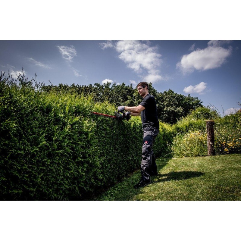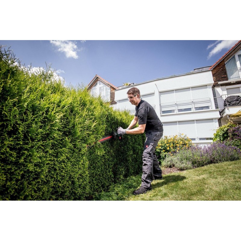 Die Heckenschere mit Ausleger eignet sich zum Schneiden sowohl höherer als auch niedrigerer Hecken vom Boden aus. Dank des Auslegers erreichen Sie auch sehr hohe Zweige und Blätter, die das ästhetische Erscheinungsbild Ihrer Hecke beeinträchtigen. Der ausziehbare Rahmen erhöht den Arbeitskomfort und reduziert den Zeitaufwand für das Heckenschneiden auf ein Minimum.