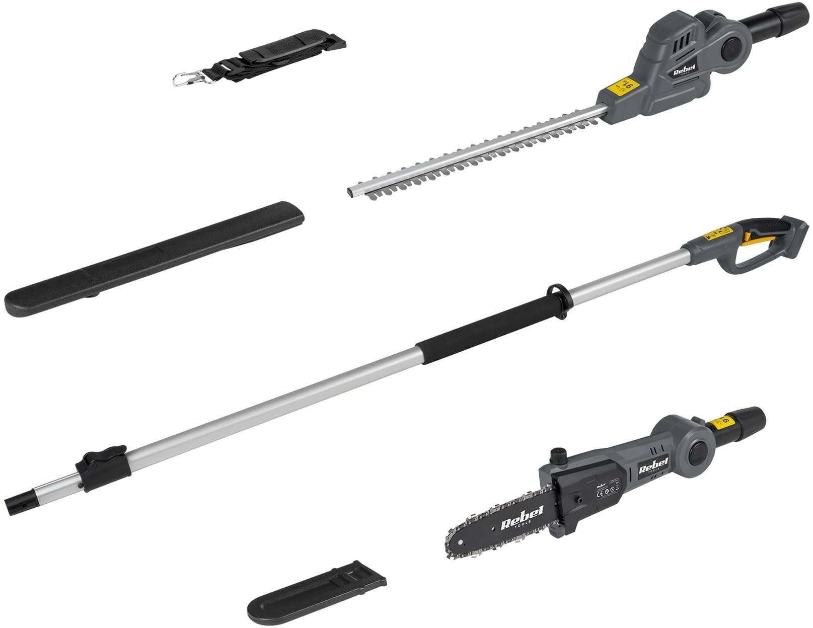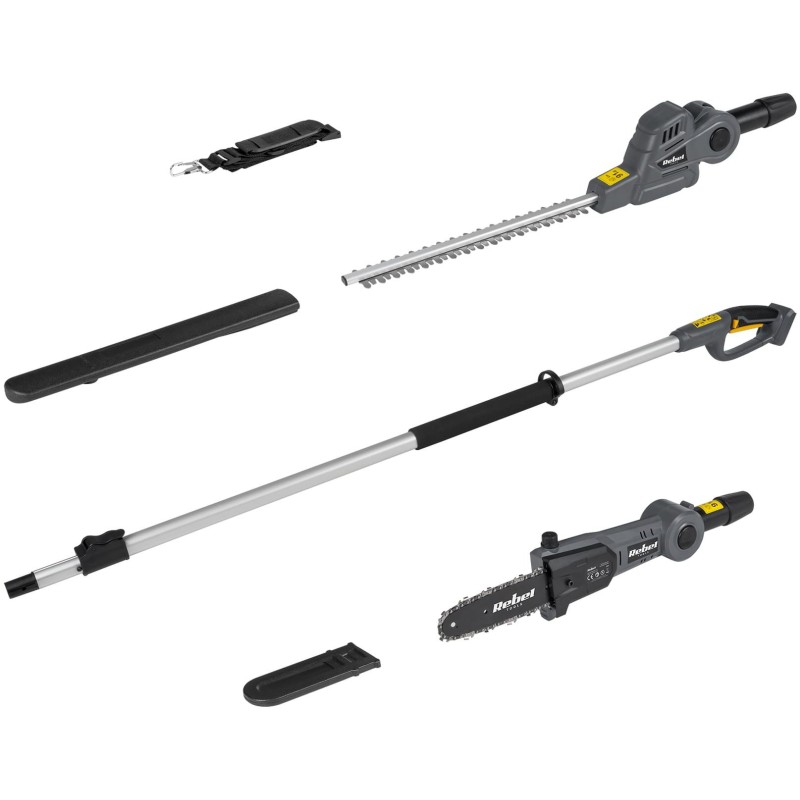 Das Rebel-Gartengeräte-Set ist das ideale Werkzeug für alle, die ihren Garten mit maximalem Komfort und Präzision pflegen möchten. Dank der innovativen Konstruktion und dem Teleskopausleger können Sie hohe Hecken und Äste problemlos schneiden – ganz ohne Leiter und unnötigen Kraftaufwand. Diese Kombination zweier Funktionen in einem Gerät spart Platz, Zeit und Geld, und die leichte, ergonomische Konstruktion garantiert Komfort auch bei längerem Einsatz.