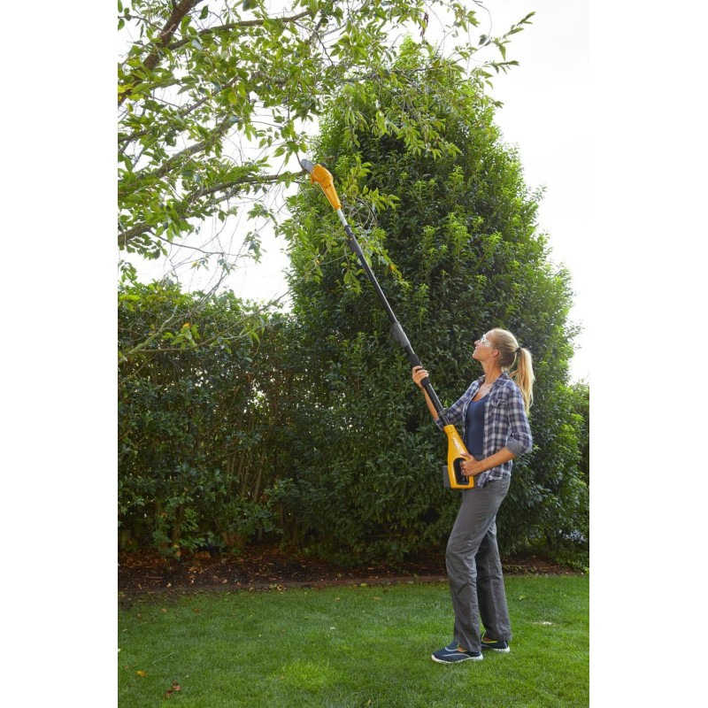 Er ermöglicht 70 Minuten Arbeit mit der Astschere und 20 Minuten Arbeit mit dem Hochentaster. Mit diesem Gerät erreichen Sie eine Höhe von bis zu 2,75 m (das entspricht fast der Höhe eines durchschnittlichen zweistöckigen Hauses!).