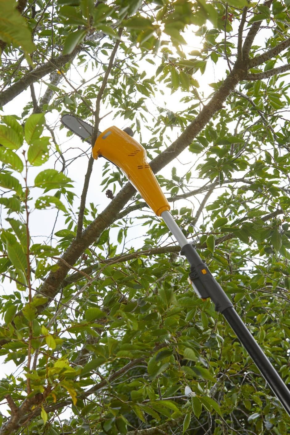 Beim Schneiden mit der Hochleistungs-Hochentaster gelangt die hochwertige Führungsschiene auch an die engsten Stellen und um diese herum, und die automatische Ölpumpe sorgt für einen reibungslosen Lauf der Kette.