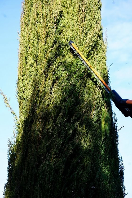 Die Heckenschere mit Ausleger eignet sich zum Schneiden sowohl höherer als auch niedrigerer Hecken vom Boden aus. Dank des Auslegers erreichen Sie auch sehr hohe Zweige und Blätter, die das ästhetische Erscheinungsbild Ihrer Hecke beeinträchtigen. Der ausziehbare Rahmen erhöht den Arbeitskomfort und reduziert den Zeitaufwand für das Heckenschneiden auf ein Minimum.