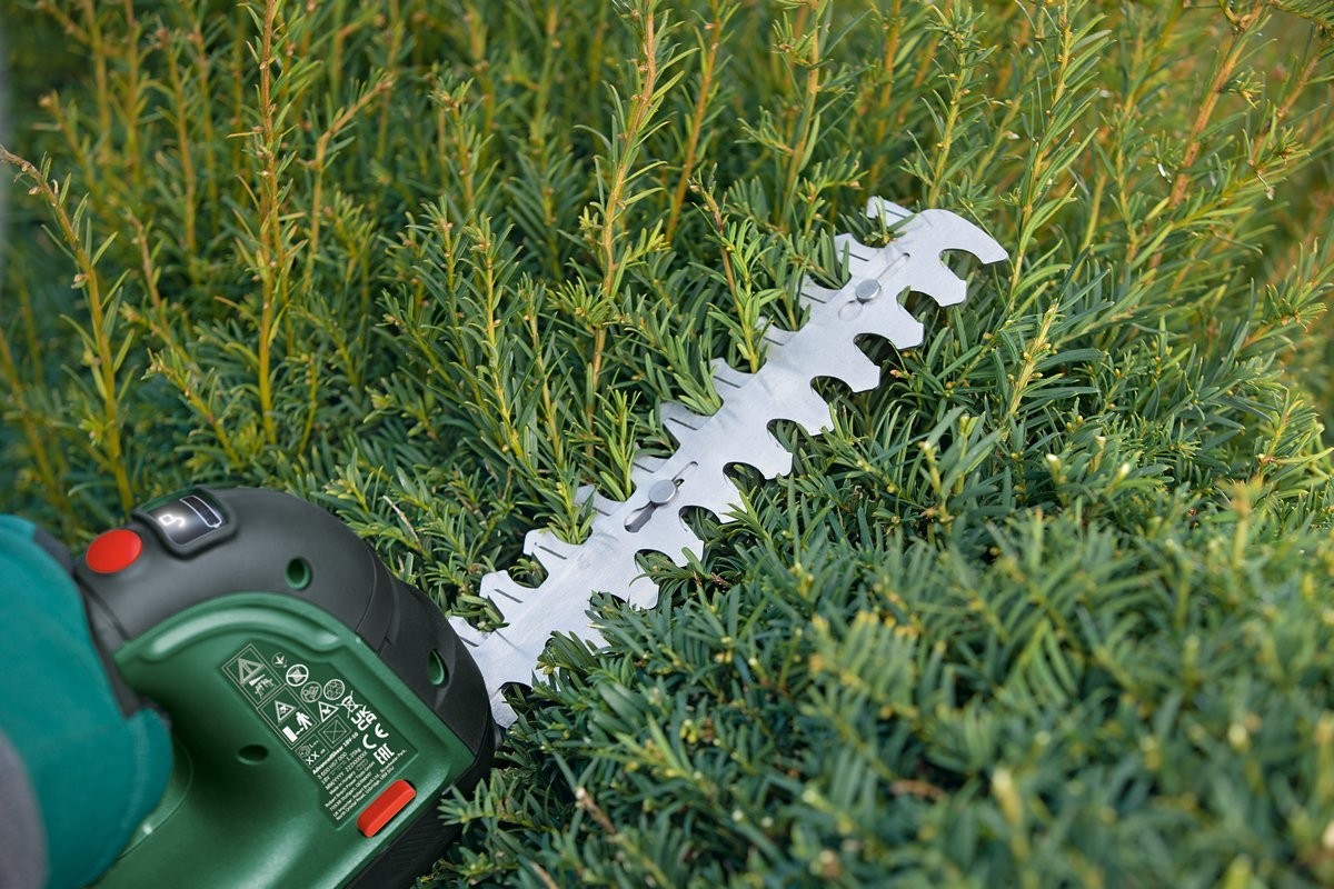 Einhandbedienung: ideal zum Formen und Schneiden von jungen Hecken oder Gras