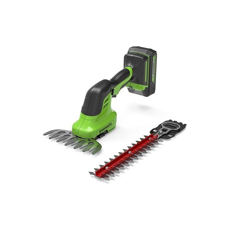 Greenworks 24 V Gras- und Heckenschere, Set mit Ladegerät + 2-Ah-Akku (G24SHTK2)