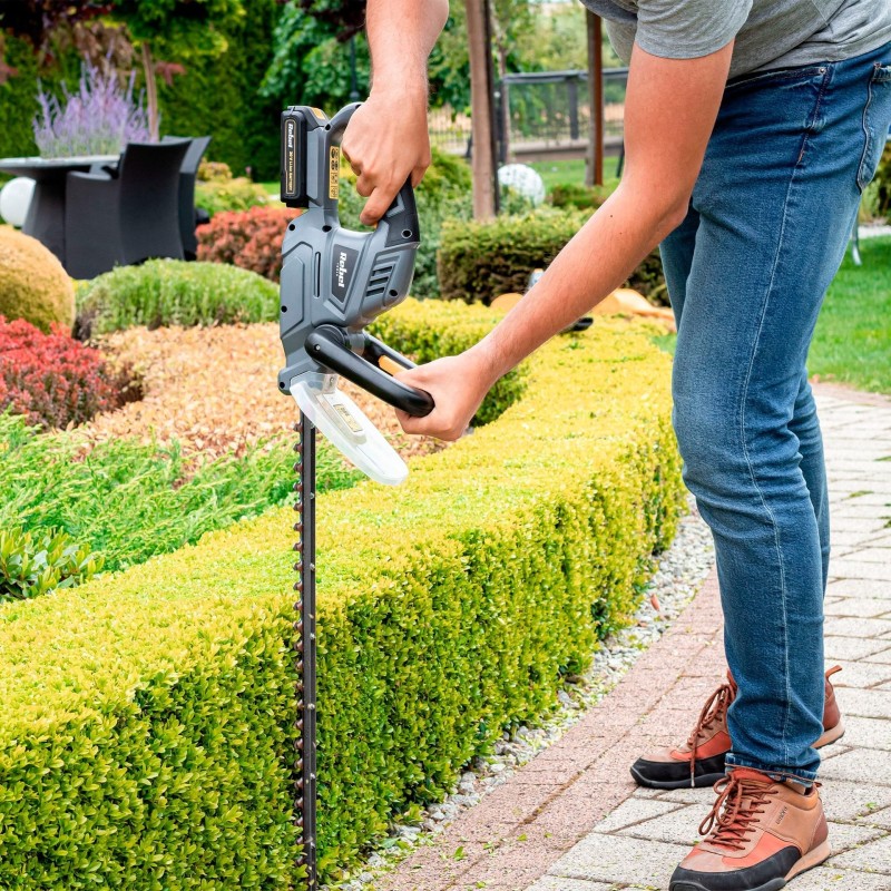 Die Akku-Heckenscheren der Rebel Tools-Serie sind ein unverzichtbares Werkzeug für die Gartenpflege, das mit Blick auf Komfort und Arbeitseffizienz entwickelt wurde. Dank der lasergeschnittenen Stahlklinge sorgt das Gerät für präzise und saubere Schnitte, wodurch sich Hecken und Sträucher leicht formen und schneiden lassen.