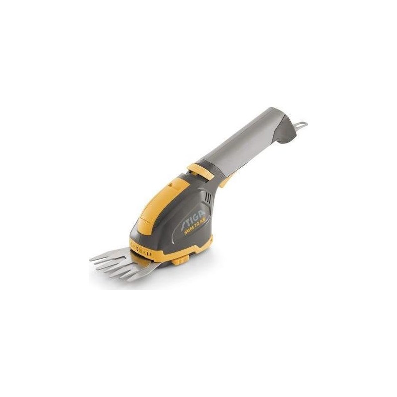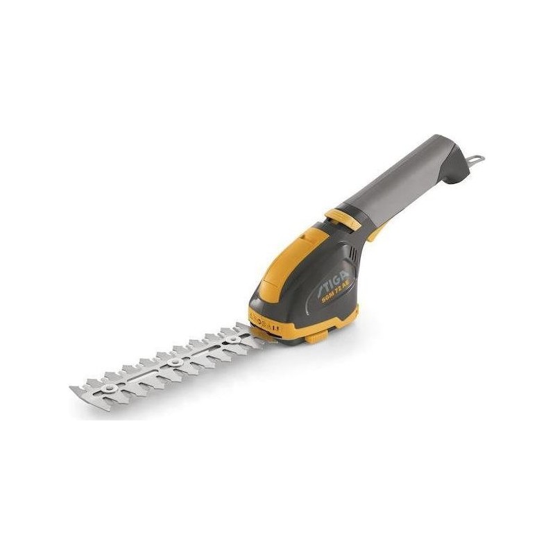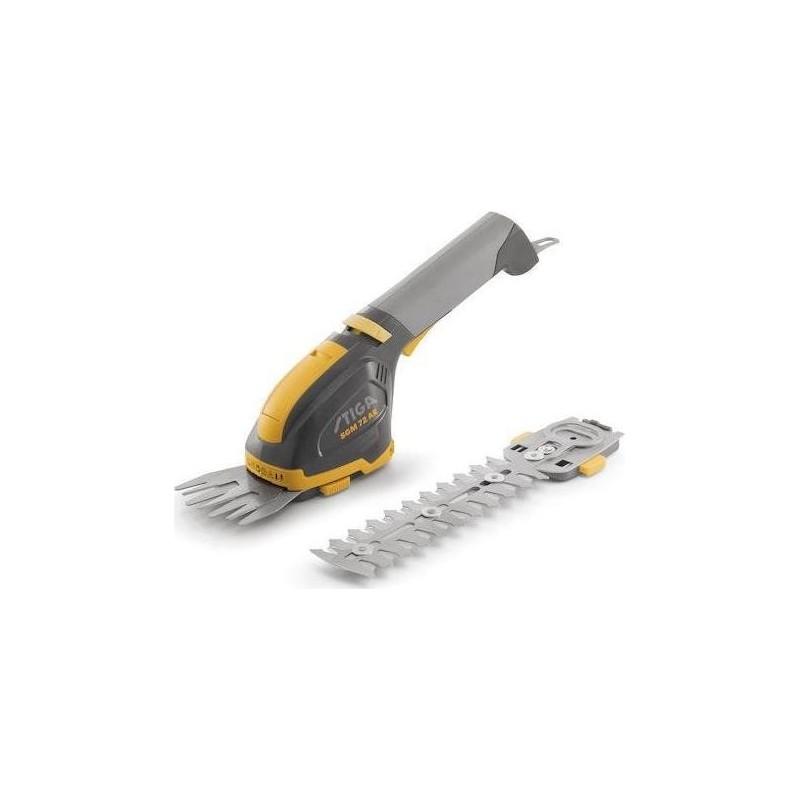 Die multifunktionalen Akku-Scheren STIGA SGM 72 AE sind leicht und einfach zu bedienen. Die SGM 72 AE ist mit einer 8-cm-Klinge zum Trimmen von Rasenkanten und einem 18-cm-Heckenschermesser ausgestattet. Die Klingen lassen sich dank des werkzeuglosen Klemmmechanismus leicht austauschen.