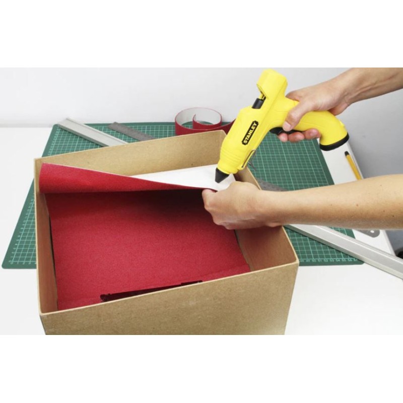 - Klebepistole mit kabellosem Betrieb (bis zu 12 Minuten)