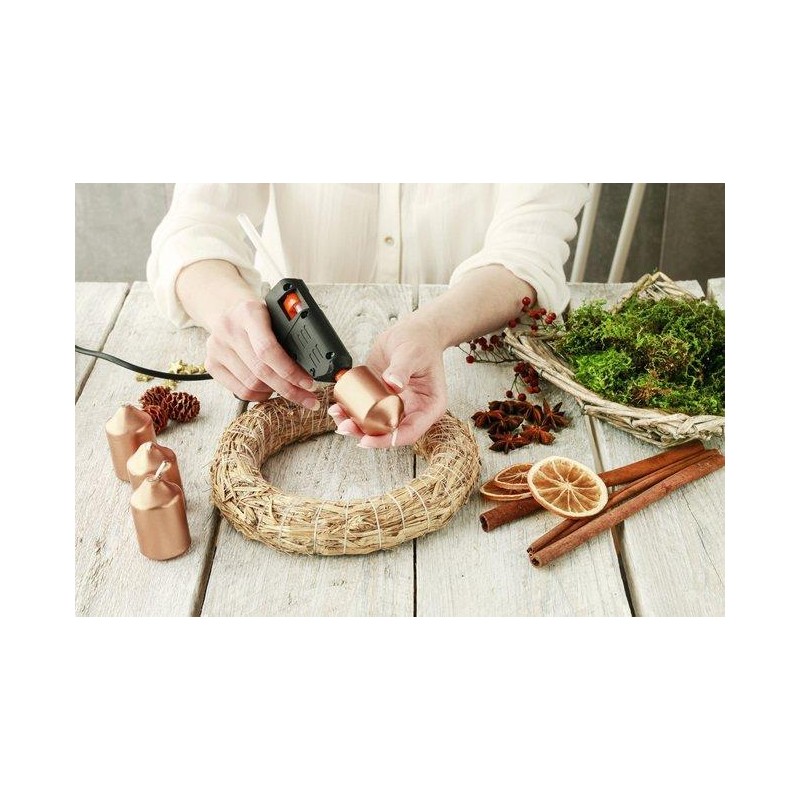 Eine Heißklebepistole ist ein unverzichtbares Gerät in jedem Haushalt. Sie eignet sich für alle Reparaturen, bei denen eine starke Verklebung von Kunststoffen, Keramik, Holz, Papier, Textilien usw. erforderlich ist, sowie für kreative Arbeiten, Heimwerkerprojekte, die Herstellung von Schmuck, Dekorationen, Blumenarrangements oder Gestecken.