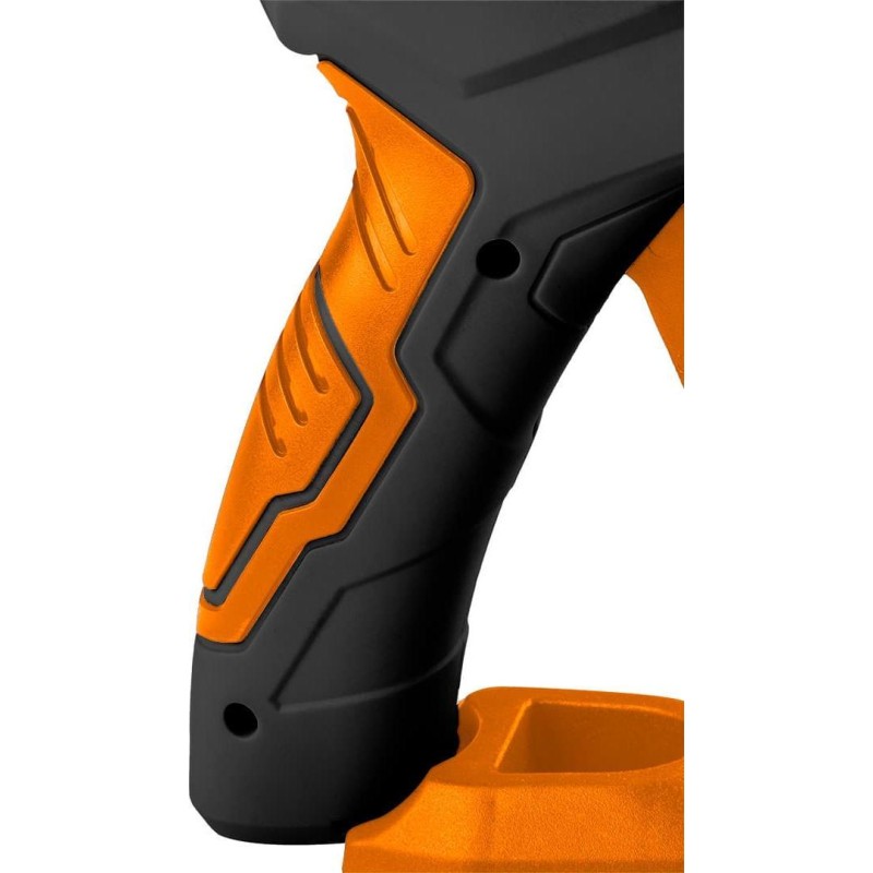 Kabellose Heißklebepistole, 4 V, USB-betrieben. Geeignet für 8-mm-Klebepatronen. Ausgestattet mit einem Lithium-Akku mit einer Kapazität von 2900 mAh. Ladezeit ca. 3 Stunden. Betriebsdauer ca. 100 Minuten. Durchsatz 360–600 g/h.